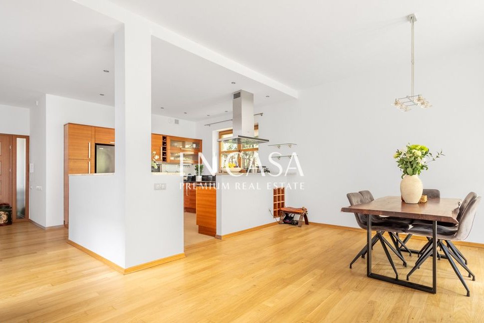 Dom w zabudowie bliźniaczej ok. 367m2, przestronny, idealny dla rodziny, 3 sypialnie, 5 pokoi, piwnica z oknami, 2 miejsca garażowe, Wilanów-Zawady