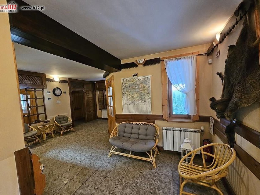 Budynek główny to ponsjonat o powierzchni 677m2 .Budynek posiada 4 kondygnacje składa sie z 13 pokoi z łazienkami , stolówki , kuchni z odbiorami z sanepidu , kotłowni, pomieszczeń gospodarczych