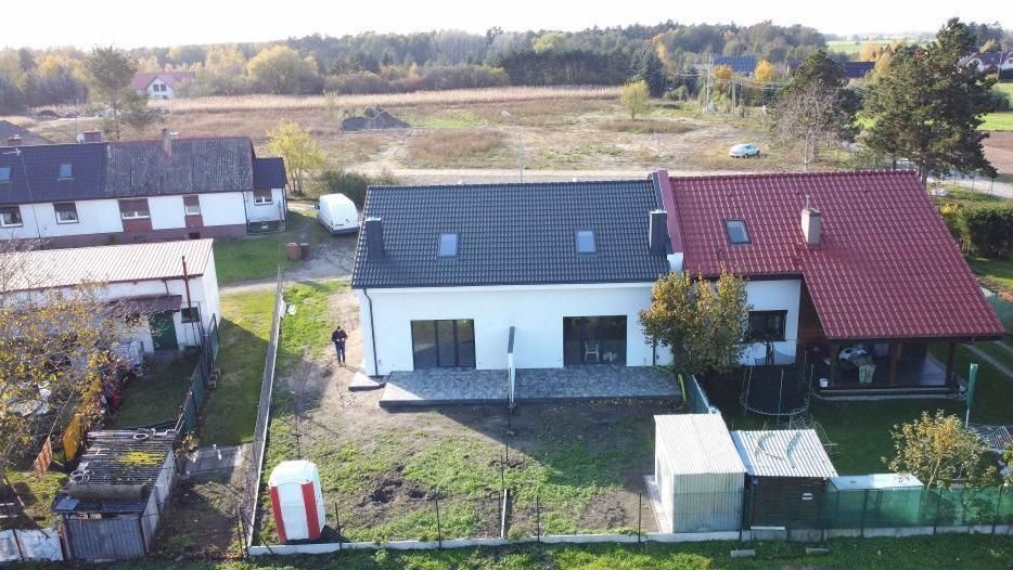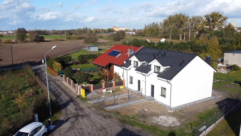 Na sprzedaż prawa połowa bliźniaka (patrząc od frontu) o powierzchni całkowitej 81,77 m2 a o powierzchni użytkowej 71,8 m2. Lokal jest wykończony do stanu deweloperskiego w podanej cenie.