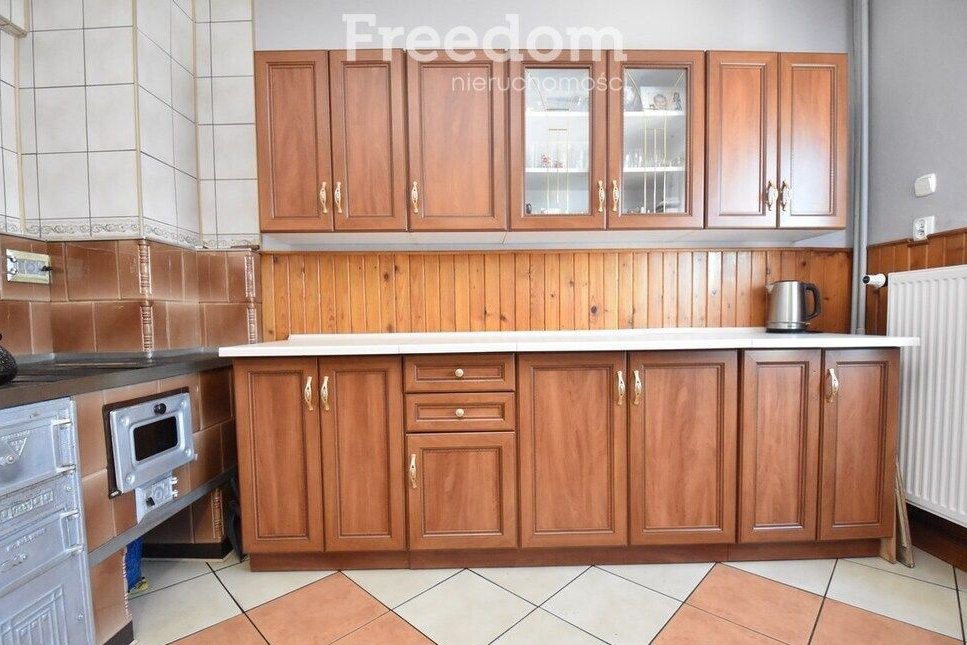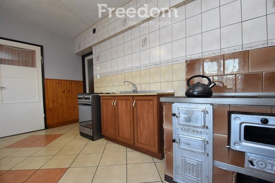- ustawnej kuchni z miejscem na jadalnię o pow. około 17 m2 w której znajduje się funkcjonujący rustykalny piec kaflowy
