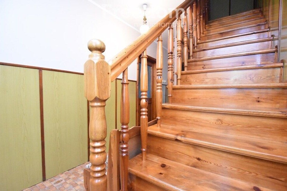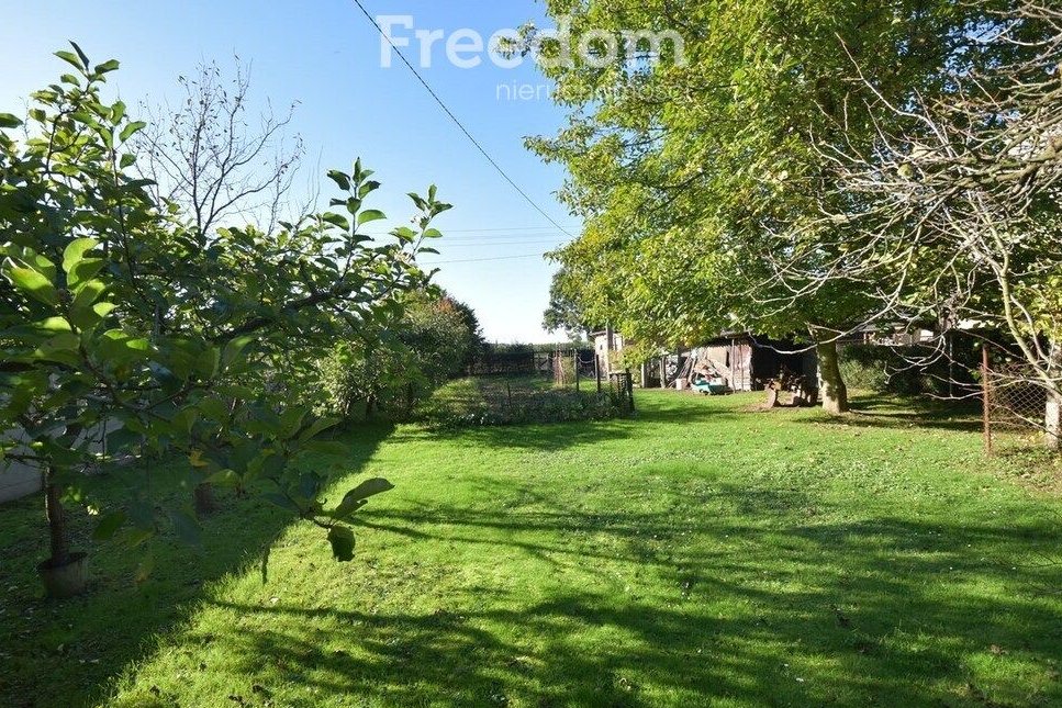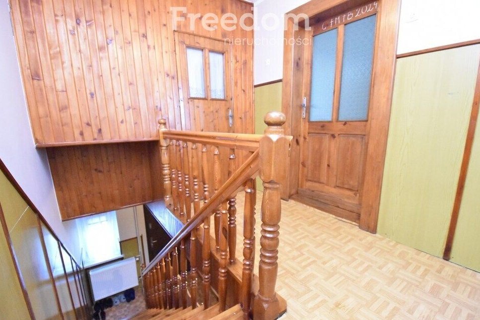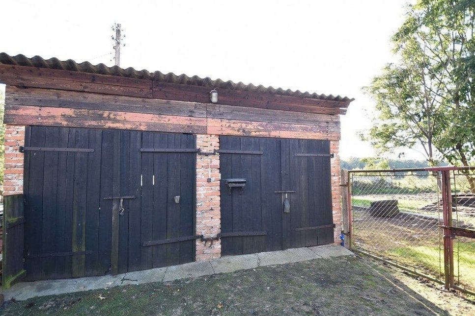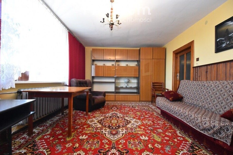 Budynek mieszkalny w całości podpiwniczony. Fundament z kamienia polnego co daje idealną izolację. Dach dwuspadowy pokryty blachą falistą. Wykończenie wnętrz zróżnicowane w zależności od pomieszczeń. Okna nowe PCV, na podłogach linoleum, deska, i kafle. Na ścianach częściowo gładzie i tynk cementowo-wapienny. Na uwagę zasługuje stolarka drzwiowa – drewniana solidna i piękna. Dom ogrzewany za pomocą pieca na węgiel i drzewo. Dom sprzedawany z działką rolną o pow. 28 arów granicząca z budynkiem mieszkalnym. Na terenie tej działki znajdują się 2 murowane garaże z dwiema bramami wjazdowymi, kilka drewnianych pomieszczeń gospodarczych oraz budynek – stodoła. Większa część działki użytkowana jako ogródek warzywny, sad z drzewami owocowymi tj. wiśnie, czereśnie, jabłka, gruszki czy orzechy. Teren przed domem ogrodzony siatką. W najbliższej okolicy mało sąsiadów (3) dom schowany za lasem, otoczony polami. W wiosce sklep spożywczy, stacja PKP – gdzie zatrzymuje się pociąg. Cisza i spokój wsi polskiej.