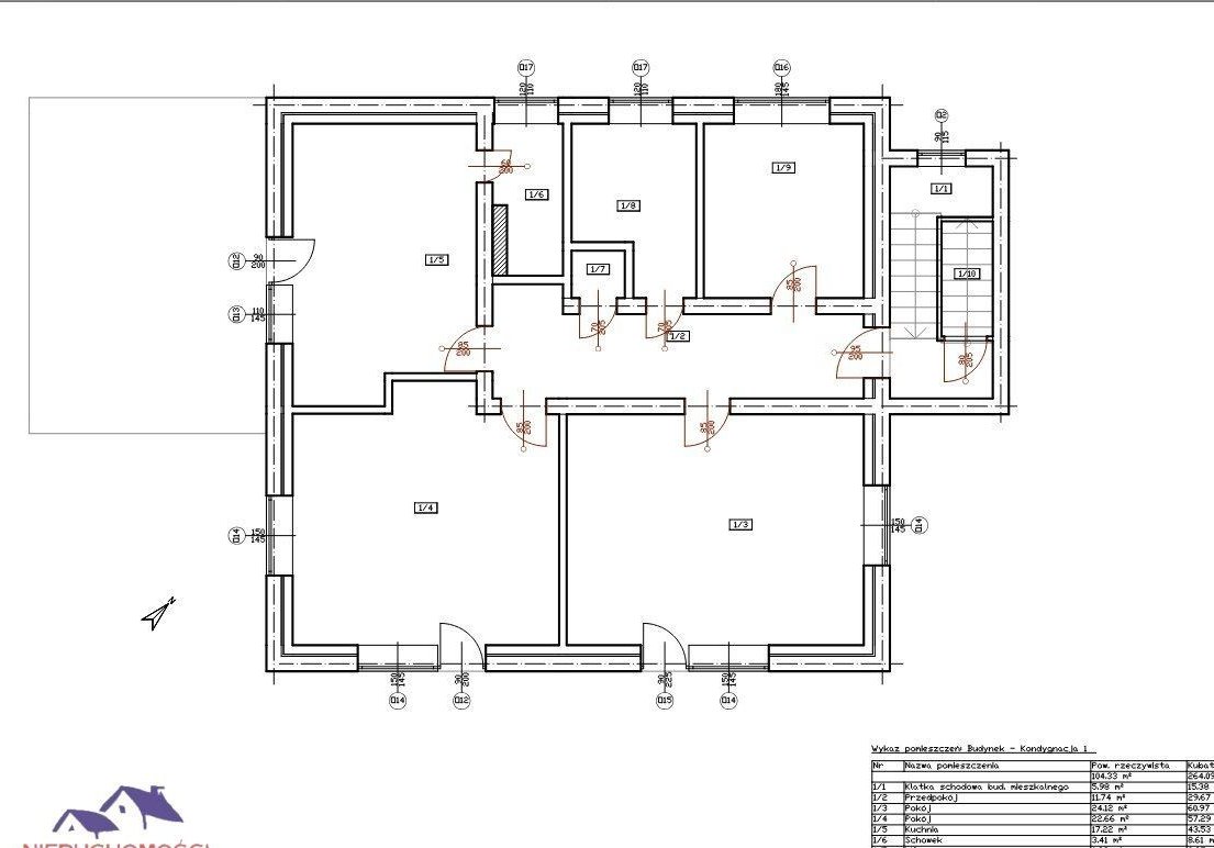Układ pomieszczeńPiętro (wys. 2,50 m):Kuchnia – 16,40 m² z wyjściem na taras