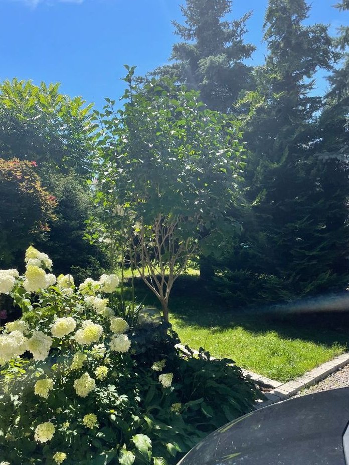 - Działka zagospodarowana pięknymi nasadzeniami kwiatów i drzew.