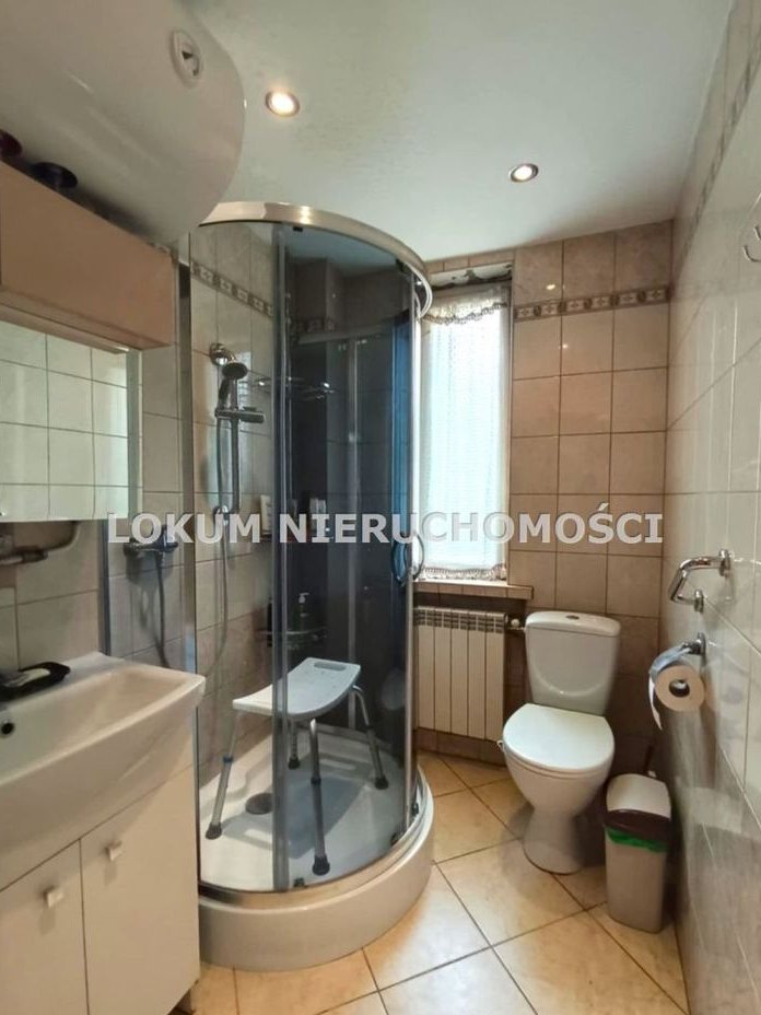 Na parterze ok.58m2: pokój z balkonem i wyjściem na podwórko 17,30m2, duża kuchnia ok.20m2, pokój ok.11m2, łazienka z WC i prysznicem 3,09m2 (po remoncie ok.10 lat temu), przedpokój 3,70m2, wiatrołap 1,17m2, klatka schodowa ok.1,5m2.