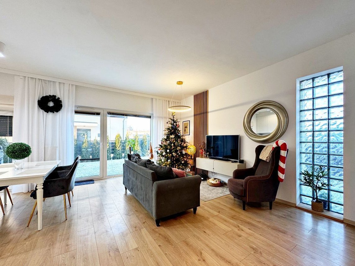 Ekspozycja południowo - zachodnia od strony ogródka z tarasem (słonecznie).