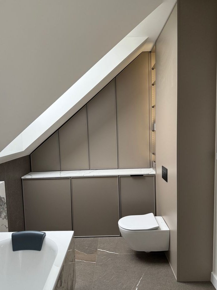 W większości pomieszczeń zostały wykonane meble w zabudowie, zaprojektowane by jak najlepiej wykorzystać przestrzeń.