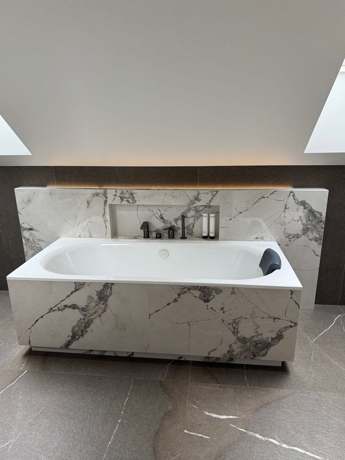 W łazienkach zostały użyte wielkoformatowe płytki również włoskiej firmy Florim.