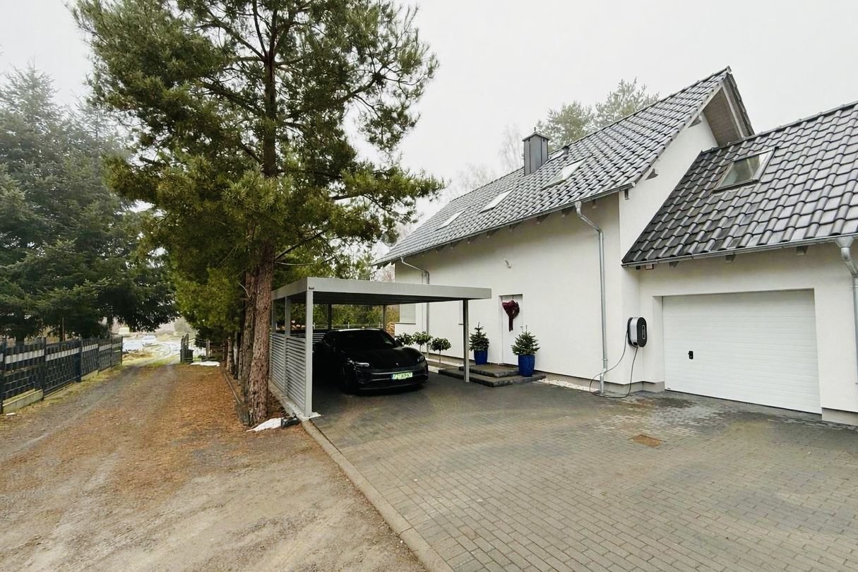 Powierzchnia domu wynosi 141,6 m², natomiast metraż został powiększony o 18,5m2, z którego powstał pokój nad garażem co finalnie daje 160,5m2. Całość usytuowana jest na całkowicie zagospodarowanej działce. Wnętrze wyróżnia się bardzo wysokim standardem. Dom został wykończony i zamieszkały pod koniec 2024r. co sprawia, że nieruchomość jest gotowa do zamieszkania i nie wymaga żadnych dodatkowych nakładów.