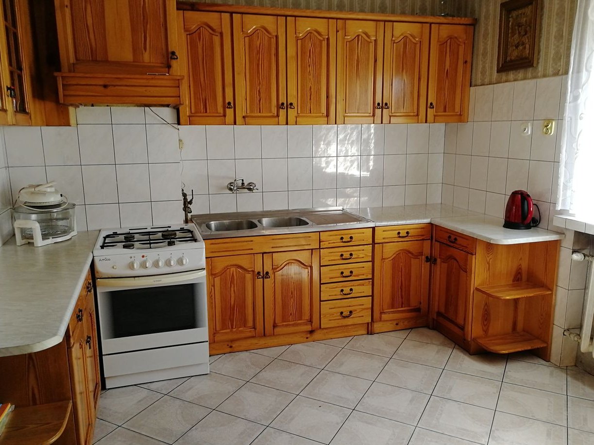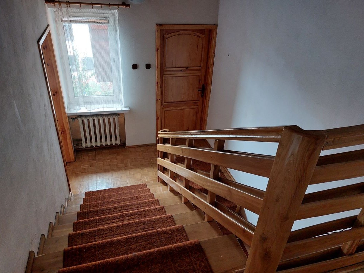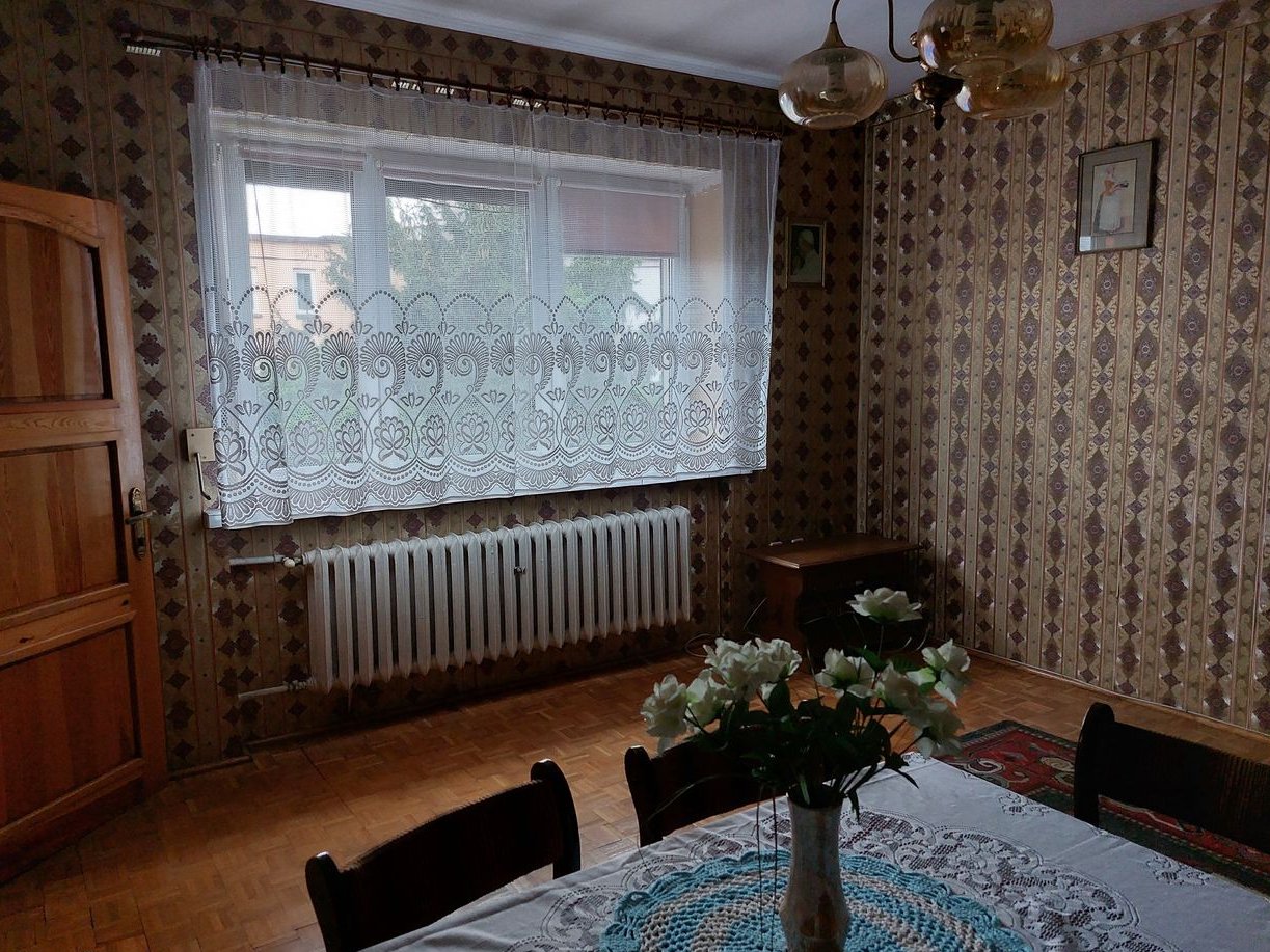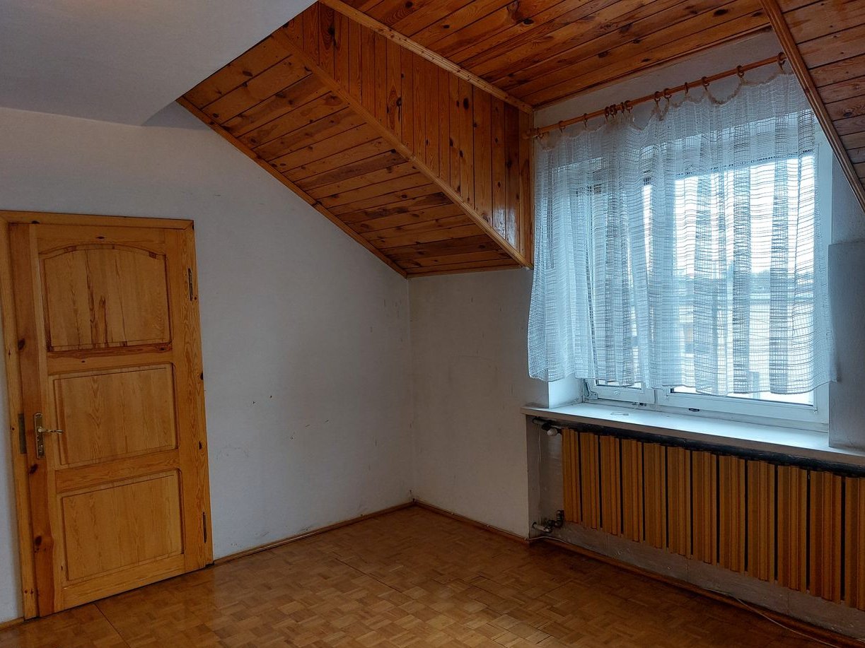 Sprzedam dom w zabudowie bliźniaczej, wybudowany w 1993 roku, z cegły. Dwupiętrowy, na ostatnim piętrze znajdują się 2 wykończone pokoje (jeden z nich posiada ładne okno mansardowe), gotowe do zamieszkania oraz 3 w stanie deweloperskim, wyposażone w centralne ogrzewanie, instalacje, tynki, wylewkę na podłodze. W sumie dom składa się z 11 pomieszczeń, dużej łazienki z wanną, kuchni oraz WC, a także garażu w bryle budynku. Na poziomie 0 ulokowana została kotłownia z wysokim sufitem, w której można urządzić dodatkową łazienkę oraz 2 pomieszczenia i WC o wysokości 2.34 cm. Na wyższych poziomach na podłodze w pokojach mozaika parkietowa lub płytki podłogowe. Dom ocieplony wełną mineralną, zarówno ściany jak i dach. Dach pokryty ocynkowaną blachą, okna plastikowe, drzwi i futryny w większości drewniane, jedynie na poziomie 0 zwykłe z płyty. Wszystkie okna wyposażone w rolety zewnętrzne starszego typu. Schody i poręcze z drewna dębowego. Z garażu prowadzi wewnętrzne przejście do domu. Budynek posiada 2 wyjścia, jedno główne od frontu, drugie z tyłu, bezpośrednio do ogrodu. Działka ogrodzona płotem betonowym, od frontu → parkan. Cicha ulica, mili sąsiedzi. Lokalizacja bliski Chmielnik, dawniej ta część miasta znana była jako Majków. Dom bezczynszowy, właściciel ponosi opłaty jedynie za media, wywóz śmieci i podatek od nieruchomości. Atrakcyjna cena, obecnie w stanie surowym nie wybuduje się budynku w cenie poniżej 3000 PLN/m2, a tu dochodzi jeszcze spora, ładna, ogrodzona działka o wielkości 425 m2. Dom wymaga odświeżenia, poza tym nadaje się do bezzwłocznego zamieszkania. Certyfikat energetyczny gotowy. Więcej zdjęć na priv.