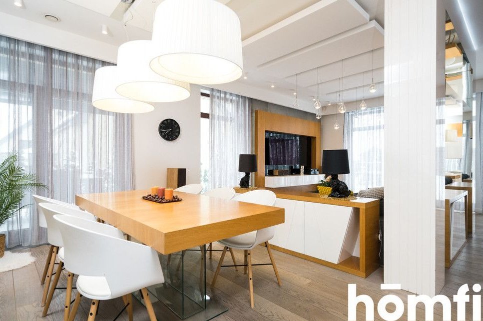 The house is equipped with the Fibaro Smart Home system, which allows for advanced, convenient control of the building's functions. Spacious windows provide abundant natural light, and views of the surrounding greenery emphasize the unique character of this property.