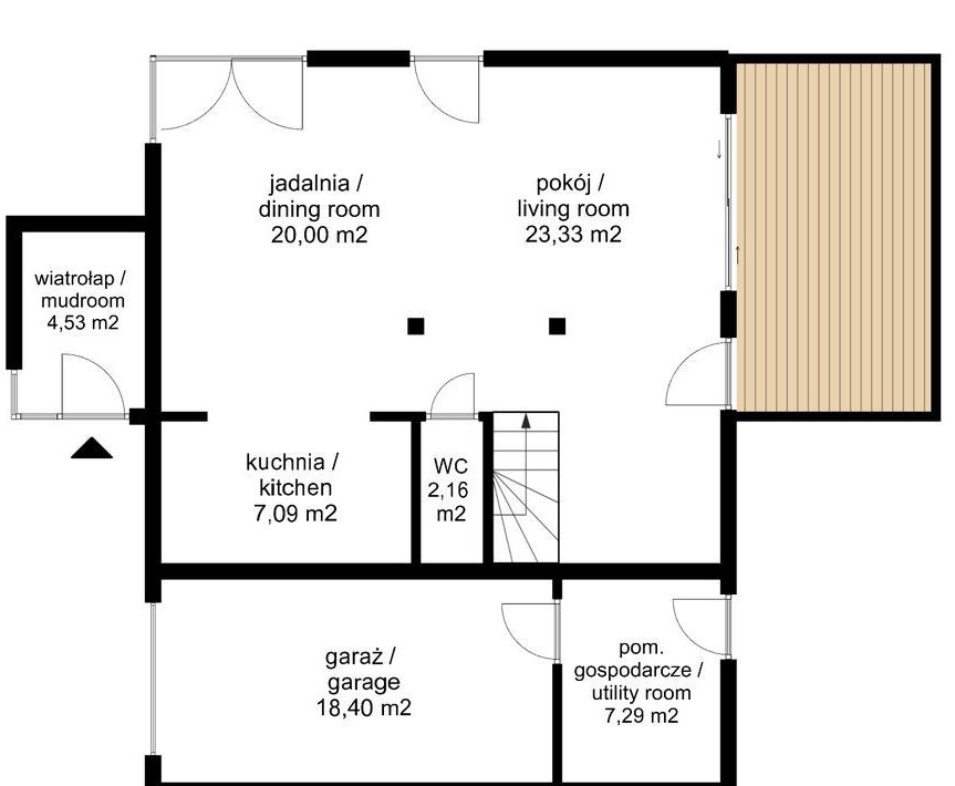 garaż z pomieszczeniem gospodarczym.