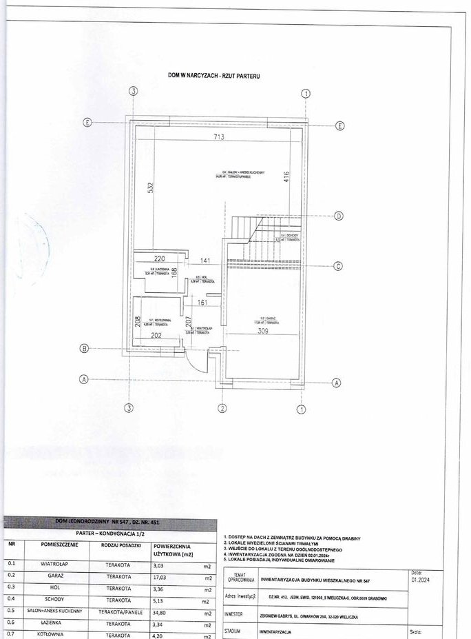 Budynek obejmuje 128 metrów kwadratowych oraz możliwośc zaadoptowania wysokiego poddasza z oknem dachowym, około 40 metrów kwadrtowych. Do domu przynależy garaż oraz miejsce parkingowe przed nim. Ogrzewanie podłogowe. Stan deweloperski.
