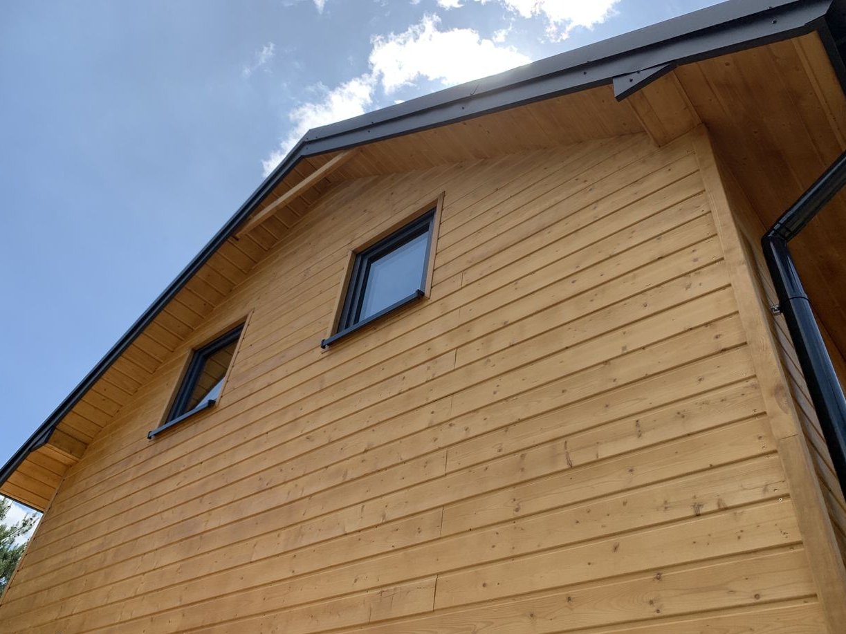 - skandynawska świerkowa deska elewacyjna szalówka softline 19mm mocowana na pióro-wpust do kontrłat, zaimpregnowana Drewnochronem Impregnat dąb jasny – 3 warstwy