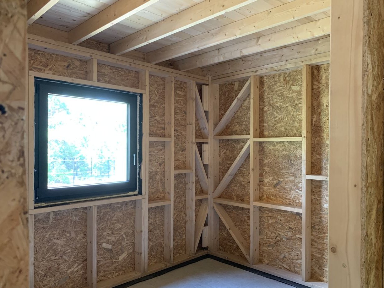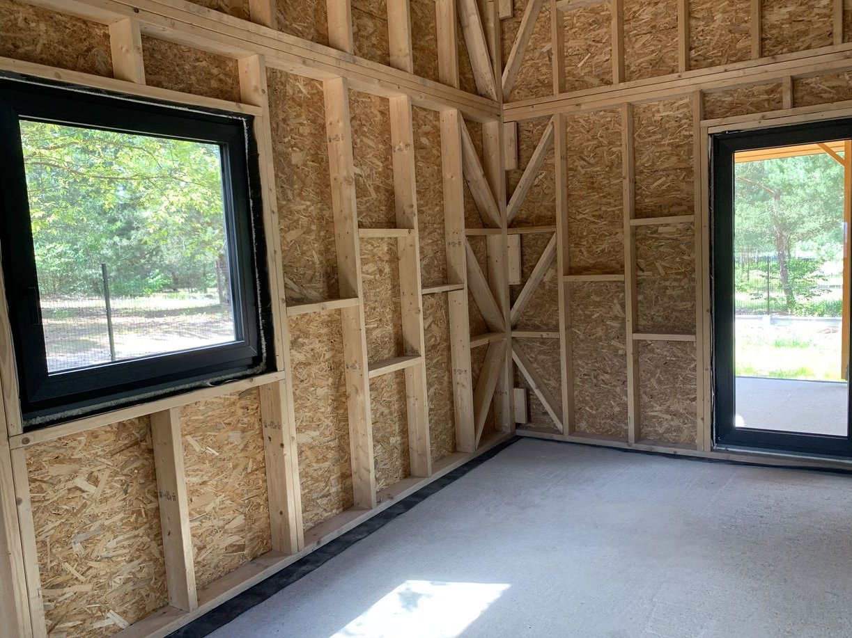 - cały szkielet budynku łącznie z dachem opłytowany-wzmocniony płytą OSB 12mm