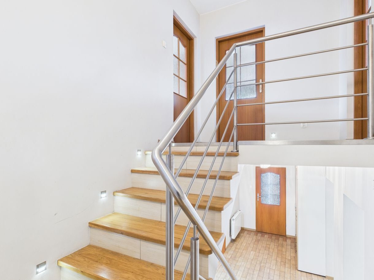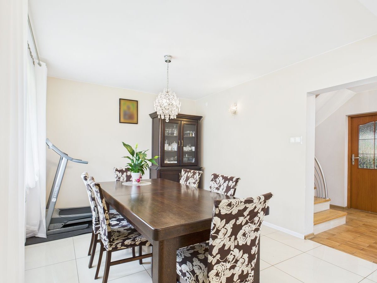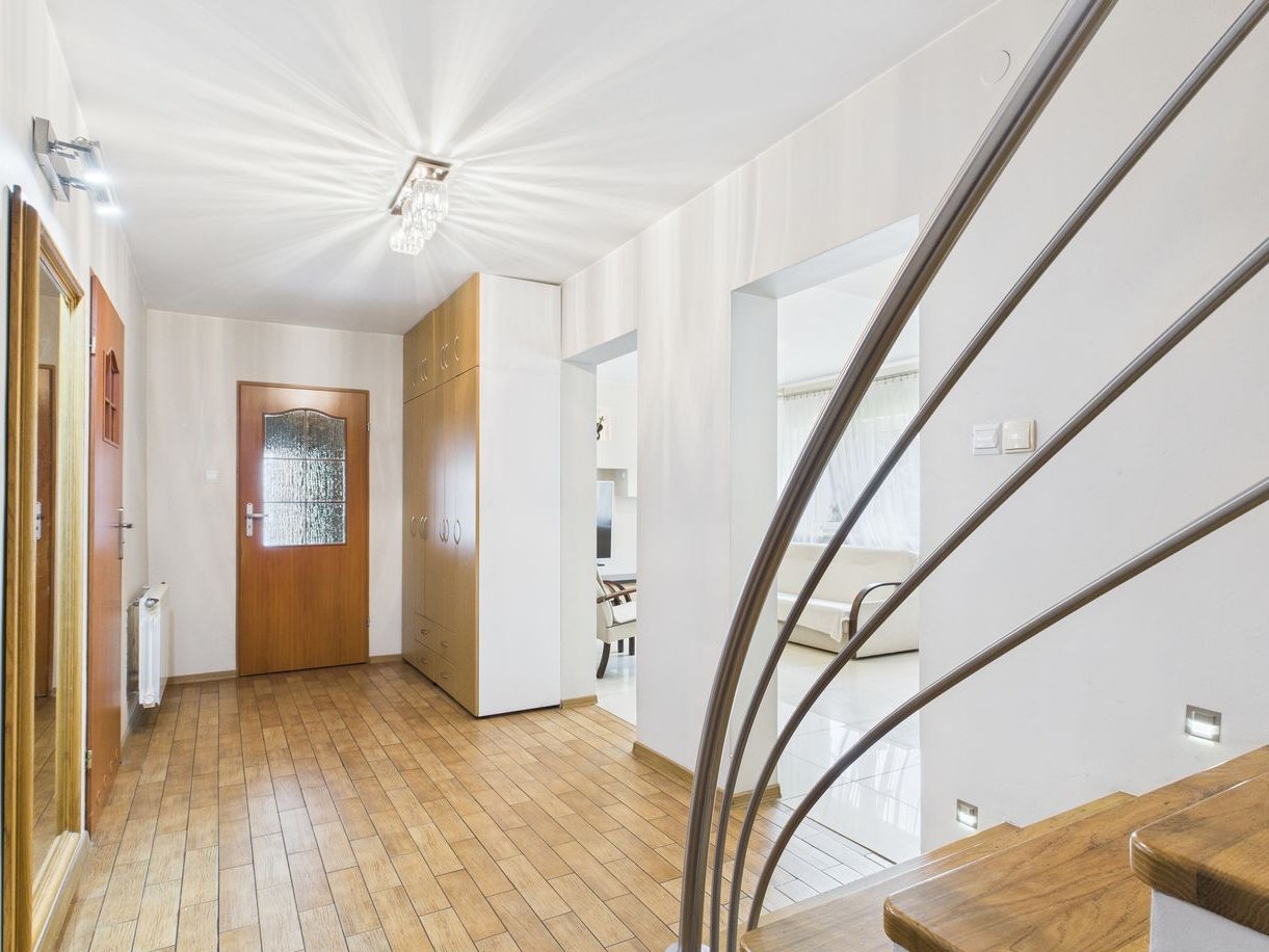 W skład pomieszczeń na parterze wchodzi salon ,kuchnia, łazienka, kotłownia i korytarz, natomiast w skład poddasza 3 pokoje i garderoba. Dodatkowym atutem jest duży taras 15,4m2 z wyjściem przez kuchnię.