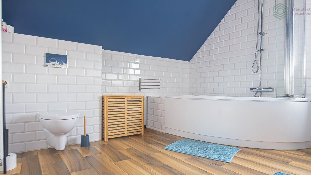 Przestronna łazienka z wanną idealne miejsce do relaksu.