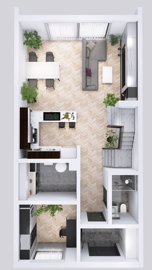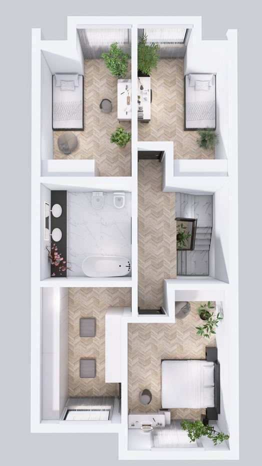 Domy w zabudowie szeregowej oferują większy metraż niż standardowe projekty rynkowe oraz funkcjonalny układ pomieszczeń dopasowany do codziennego życia.