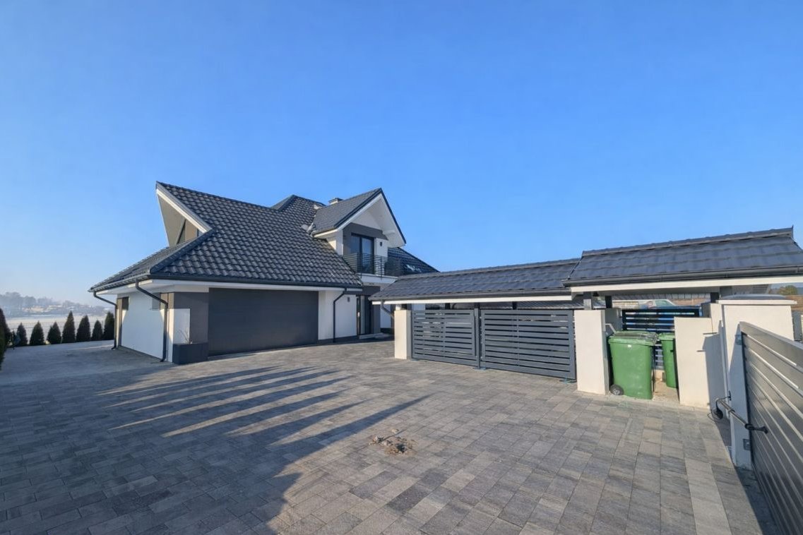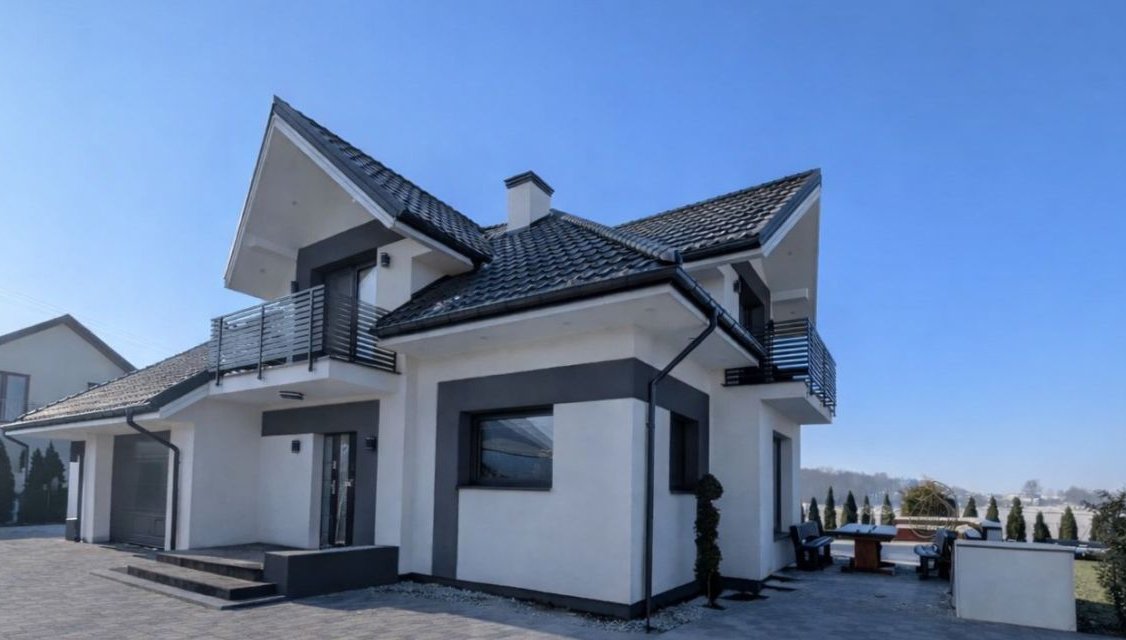 Dom wykonany z wysokiej jakości materiałów, z dbałością o detale oraz nowoczesną estetykę: