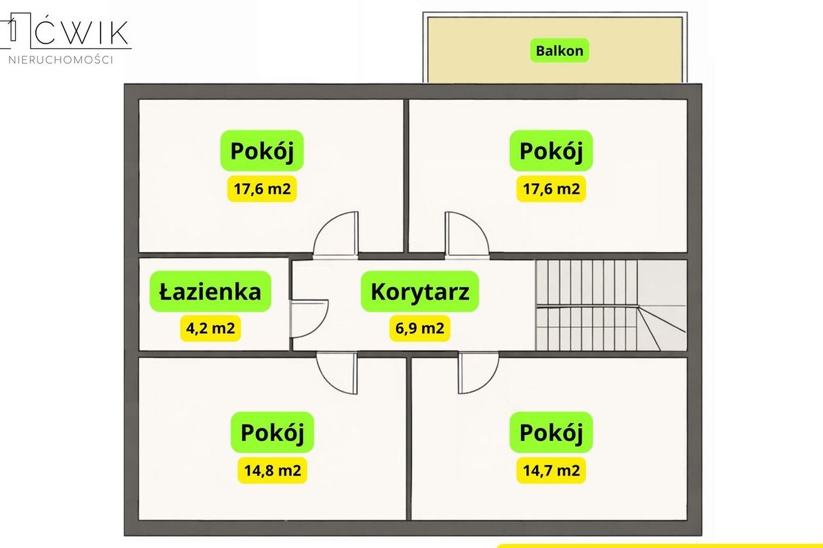 4 pokoje: 17,6 m2 / 17,8 m2 / 14,8 m2 / 14,7 m2