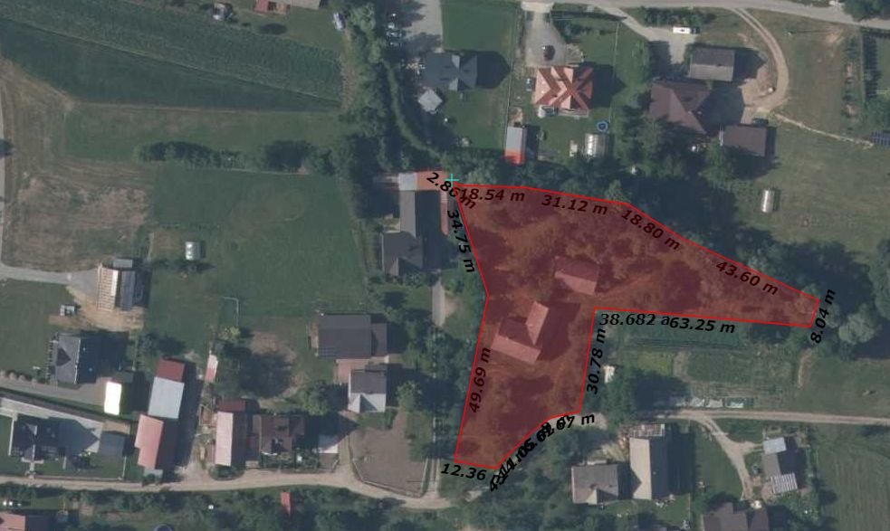 Na sprzedaż duża działka o powierzchni 3800 m2 z drewnianym domem do remontu w powiecie myślenickim