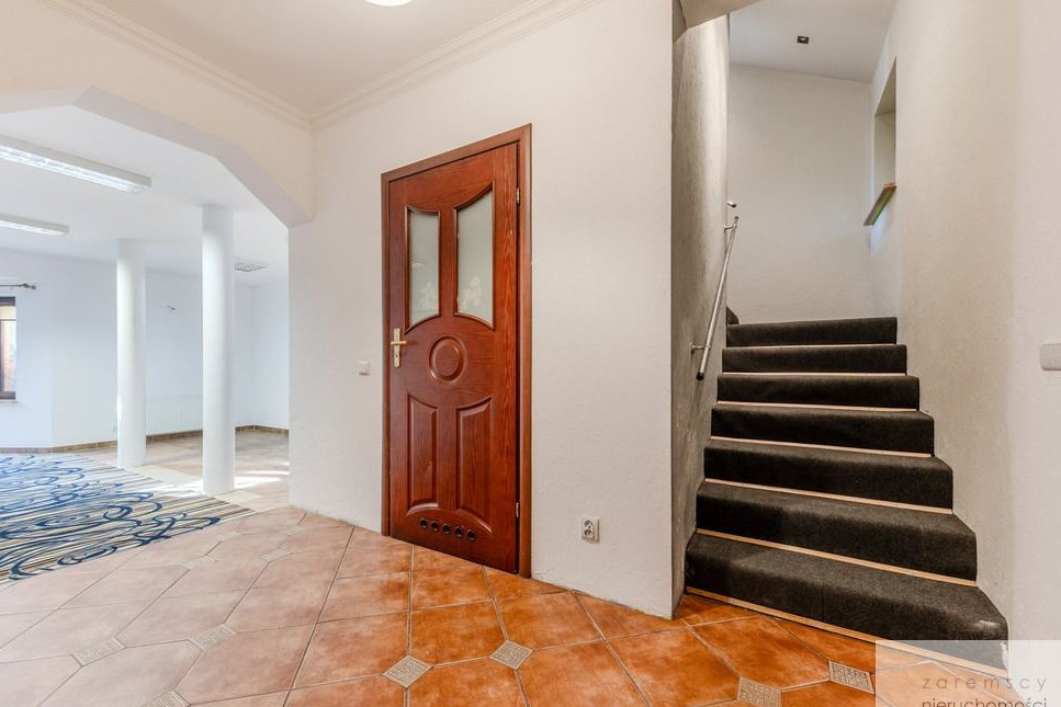 - Drugi, mniejszy budynek, o powierzchni ok. 70 m², usytuowany w tylnej części działki – idealny na biuro, lokal użytkowy lub niezależne mieszkanie.