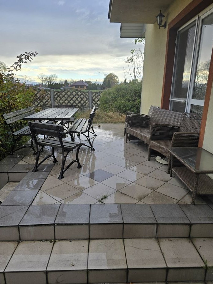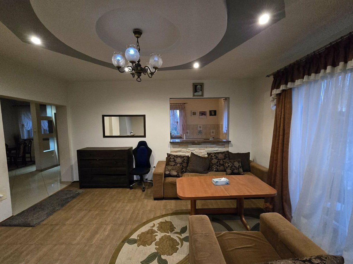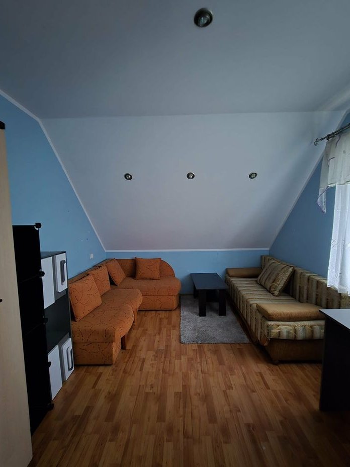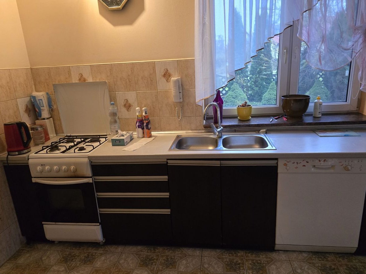 W domu znajdują się starsze meble oraz widoczne są ślady użytkowania (ściany, podłogi). Do uzgodnienia pozostaje, czy wyposażenie ma zostać dla nowego właściciela, czy zostanie usunięte przed przekazaniem nieruchomości.