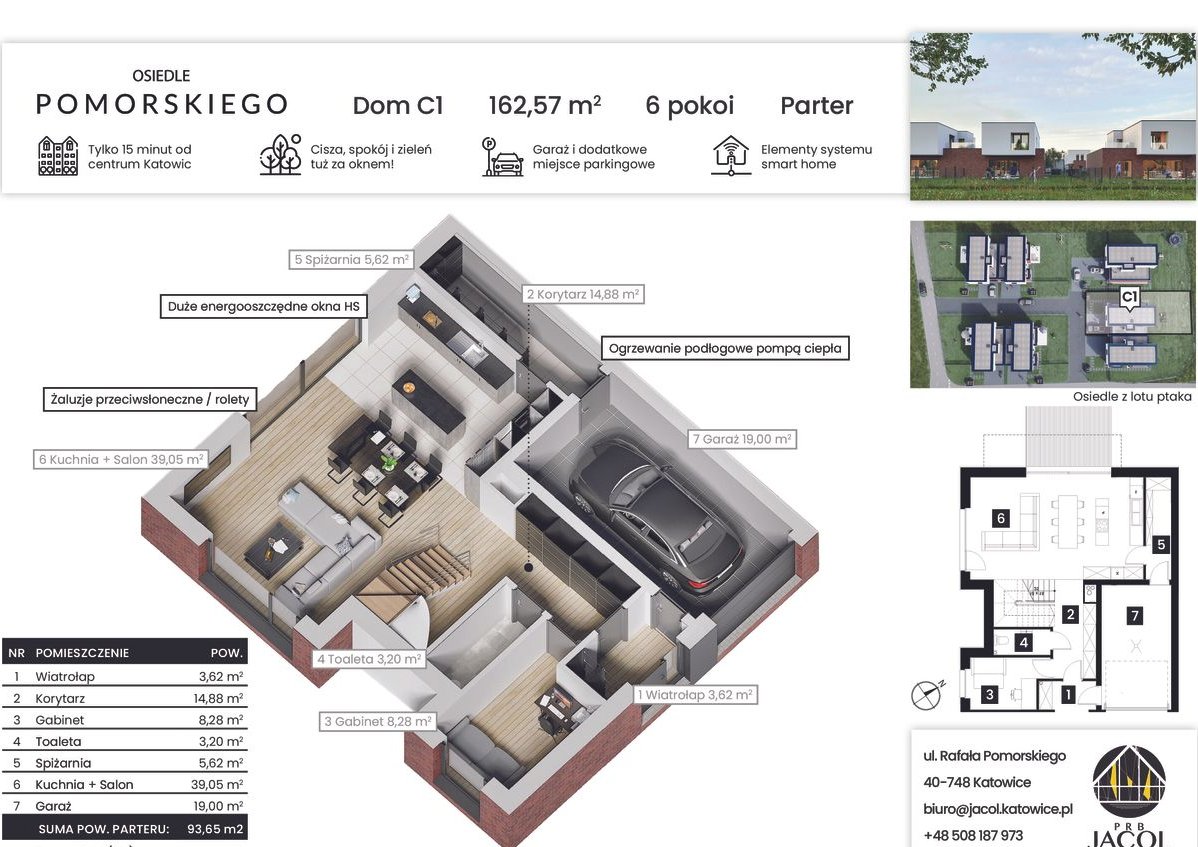 Nowoczesny dom jednorodzinny typ C o powierzchni 162,57 m², zlokalizowany w kameralnej inwestycji Osiedle Pomorskiego w Katowicach – Podlesie. Funkcjonalny układ, prywatny ogród, taras oraz garaż zapewniają komfortowe warunki do codziennego życia.
