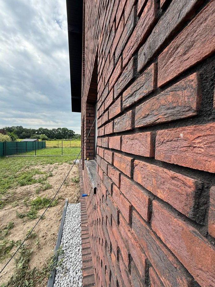 * Ściany składają się z gazobetonu, wełny mineralnej oraz cegły belgijskiej ręcznie formowanej