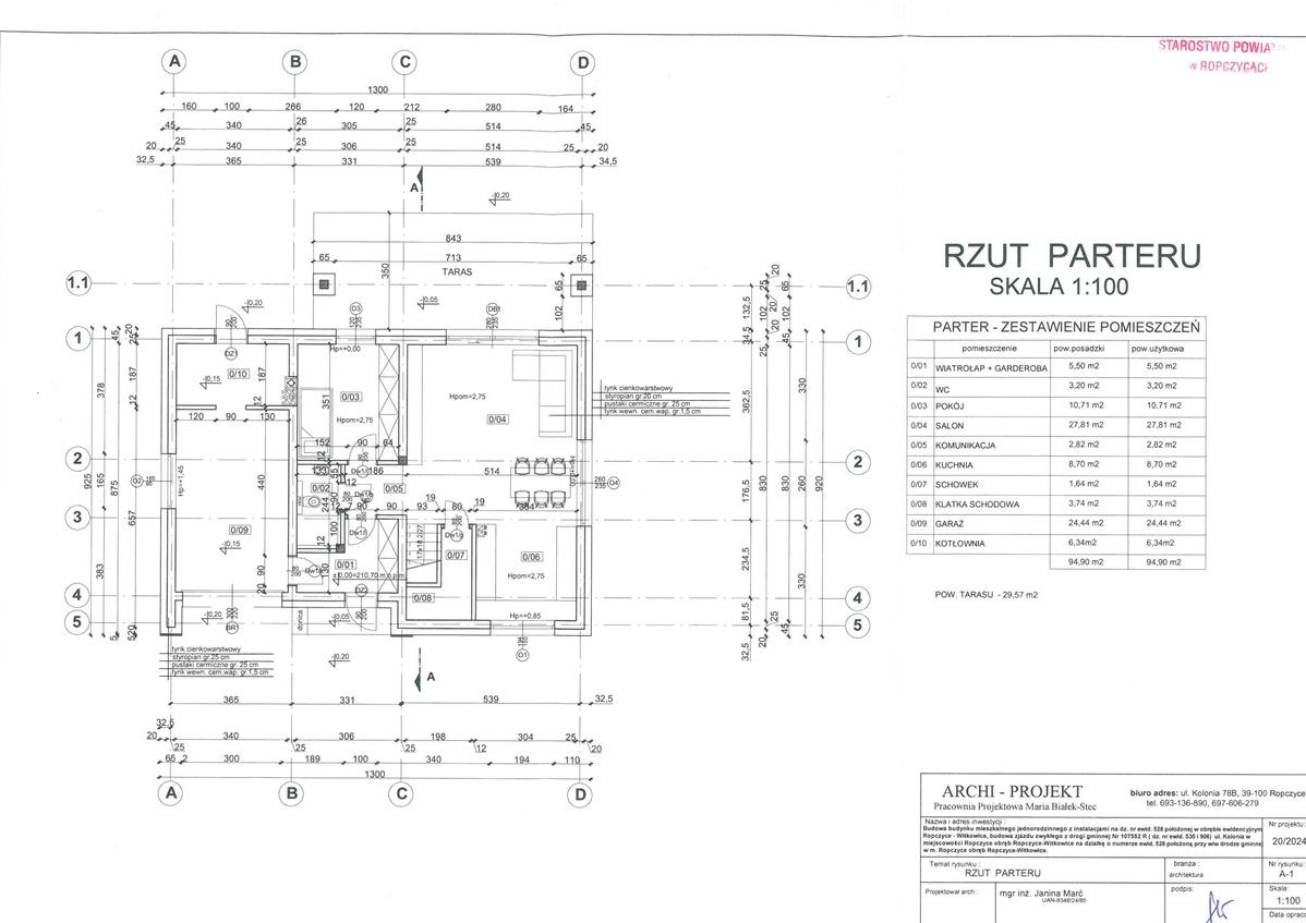 Powierzchnia domu użytkowa: 175 m2 w tym garaż - 24,44 m2 oraz kotłownia 6,34m2