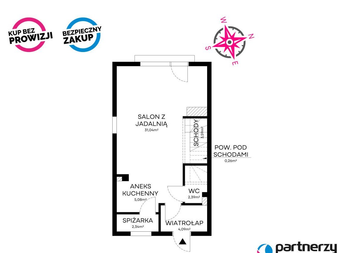 Dom jednorodzinny jednopiętrowy o powierzchni 94m2 + ogródek 75m2, Banino/Miszewko, ul. Dąbrowa: