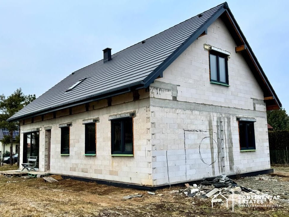 Dom jednorodzinny w stanie surowym zamkniętym, zbudowany z materiałów wysokiej jakości i z myślą o wygodzie przyszłych mieszkańców.