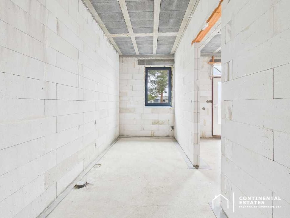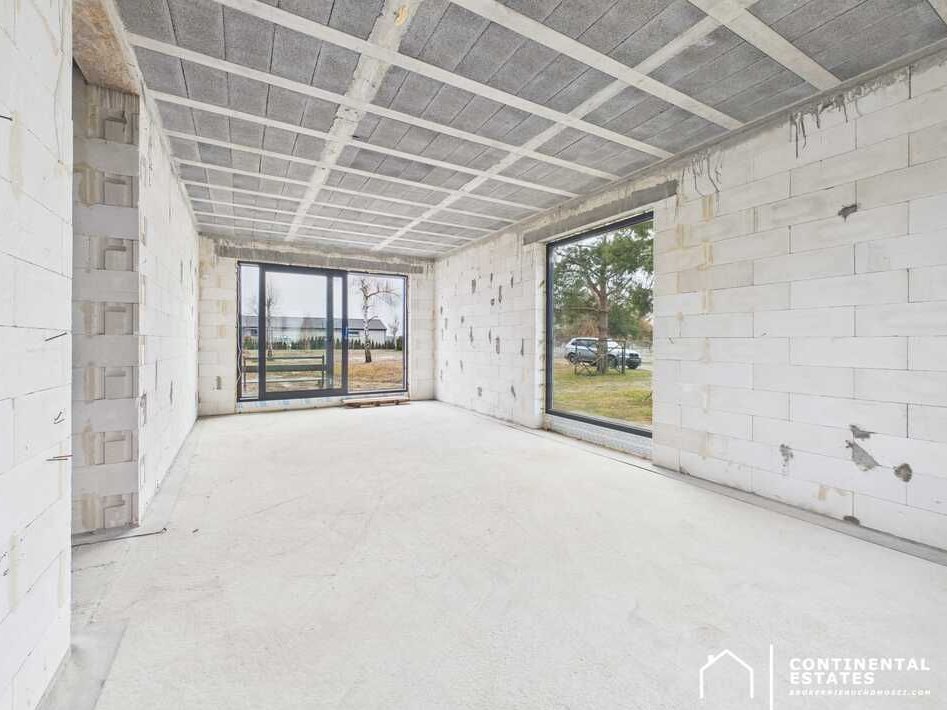 Na podłogach gotowa wylewka cementowa, ściany nieotynkowane, dom nieocieplony – czyli pełna swoboda adaptacji wykończenia według własnej wizji.
