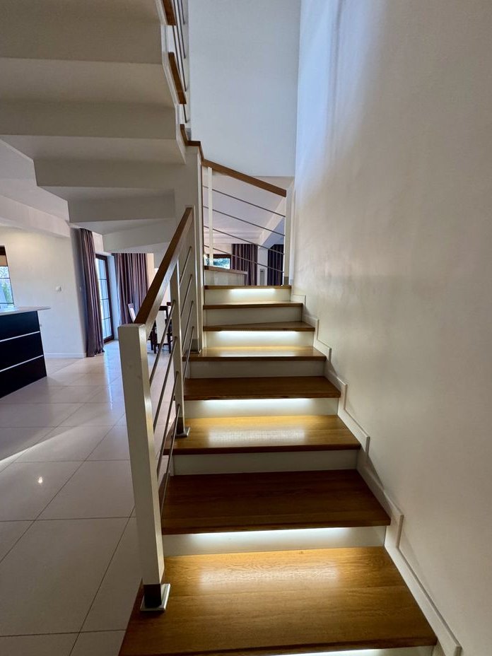 Poddasze: hol, 3 pokoje, duża łazienka, suszarnia z pralnią, garderoba, pomieszczenie gospodarcze.