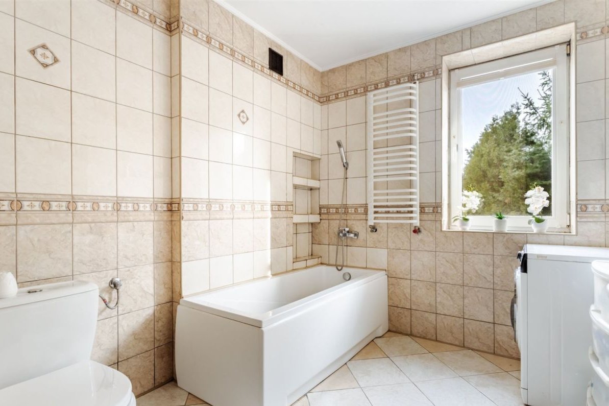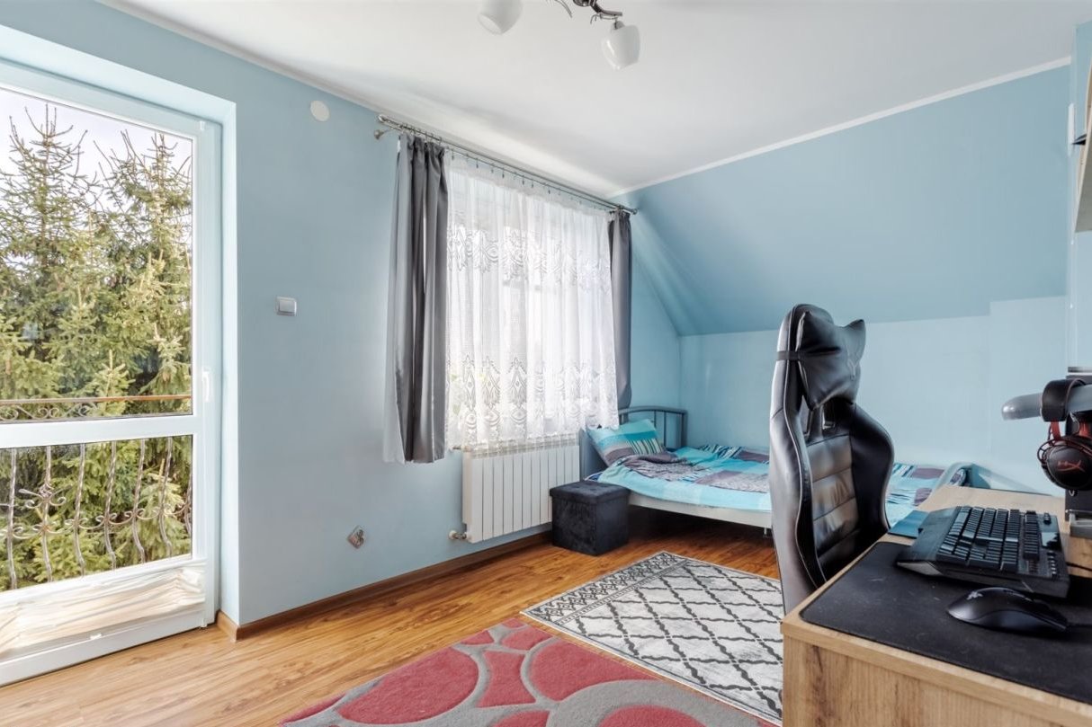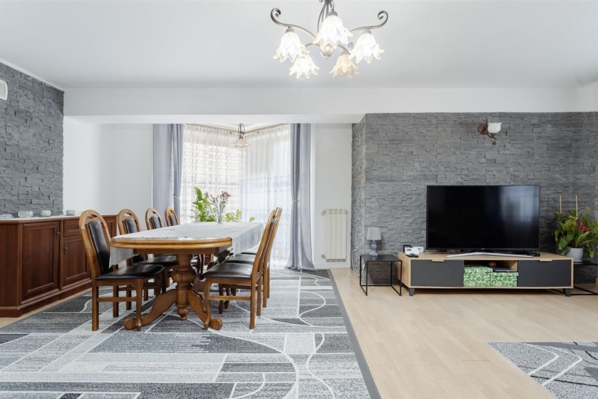 Dom ogrzewany systemem tradycyjnym (piec na ekogroszek) z grzejnikami naściennymi. Wystrój wnętrza jest klasyczny, wymaga odświeżenia, pozostała do wykonania łazienka na poddaszu. Na poddaszu zaadoptowano dodatkowo powierzchnię nad garażem, dzięki czemu przestrzeń może stanowić oddzielne mieszkanie / studio. Dom jest bardzo dobrze docieplony. Elewacja domu oraz taras pozostały do dokończenia.
