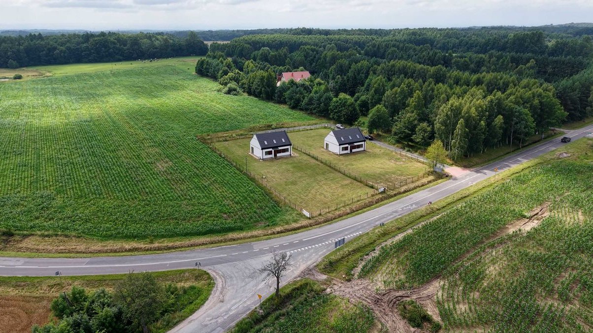 Dom oddany do użytku w 2023 roku, wykonany przez firmę SENDOM zgodnie z projektem Smart Comfort + o powierzchni całkowitej (po podłodze) 142,03m2,w tym użytkowej 111,57m2. Sendom to producent energooszczędnych domów prefabrykowanych w systemie drewnianej konstrukcji szkieletowej. Grubość ścian zewnętrznych wynosi 345 mm, w tym 250mm wełny mineralnej i 70mm styropianu grafitowego. Elementy konstrukcyjne wykonane są z drewna KVH, w połączeniu z konstrukcyjną płytą Fermacell, charakteryzują się wysoką wytrzymałością, odpornością na wilgoć, a także dobrą izolacją akustyczną i ognioodpornością. Nieruchomość posiada dwie kondygnacje użytkowe.