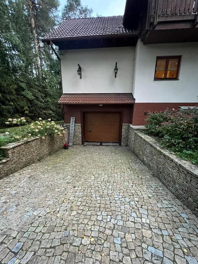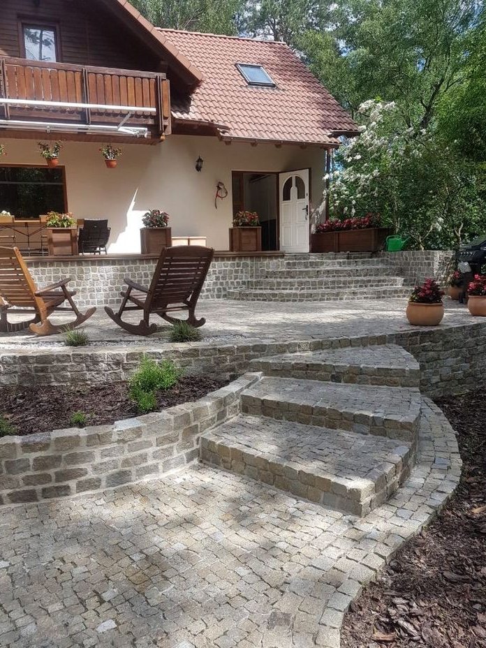 duży podjazd wyłożony kostką granitową