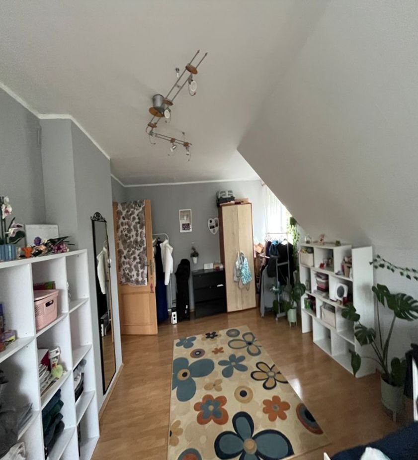 Na poddaszu: 3 pokoje, łazienka z WC (opłytkowana, wyposażona w wannę, kabinę prysznicową, umywalkę, WC) oraz przedpokój. Ponadto balkon. W piwnicy znajduje się kotłownia, garderoba, pralnia oraz garaż.