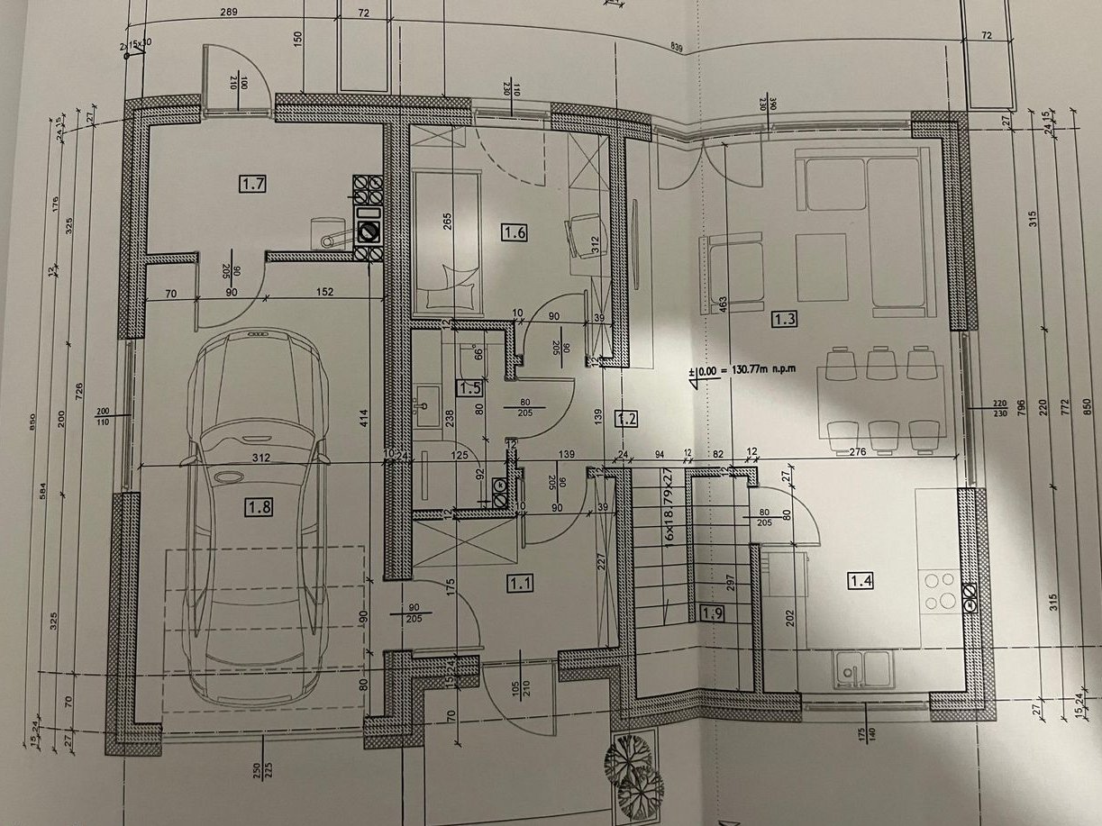 Obszerny dom o klasycznej bryle, powierzchni całkowitej 150 m2 i użytkowej 127 m2, położony jest na kształtnej działce o powierzchni 629 m2 i obejmuje: