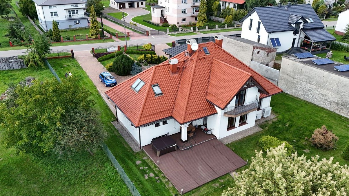 Dom wybudowany wg.standardów,zlokalizowany 15 min drogi od Dąbrowy Górniczej, w spokojnej okolicy.Na parterze znajduje się duża kuchnia,jadalnia,salon,łazienka-projekt Mera.Meble w całym domu-Kler.Piętro stanowią 3 sypialnie z łazienkami,2 garderoby.W bryle budynku znajduje się garaż dwu stanowiskowy,pralnia, suszarnia,kotłownia.Na działce przed domem wiata garażowa, w głebi domek gospodarczy i wiata dla gości.Duży taras ,jaccuzi.Dom klimatyzowany,monitorowany,ogrzewanie podłogowe parter,piętro grzejniki,rolety antywłamaniowe,nawodnienia na całej powierzchni działki.