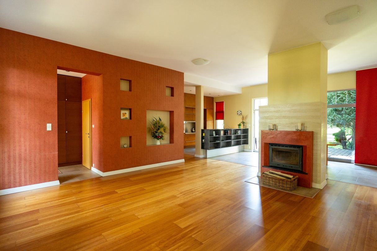 Przestronny, klimatyzowany salon (wys. 3,30 m) z kominkiem, jadalnią i aneksem kuchennym