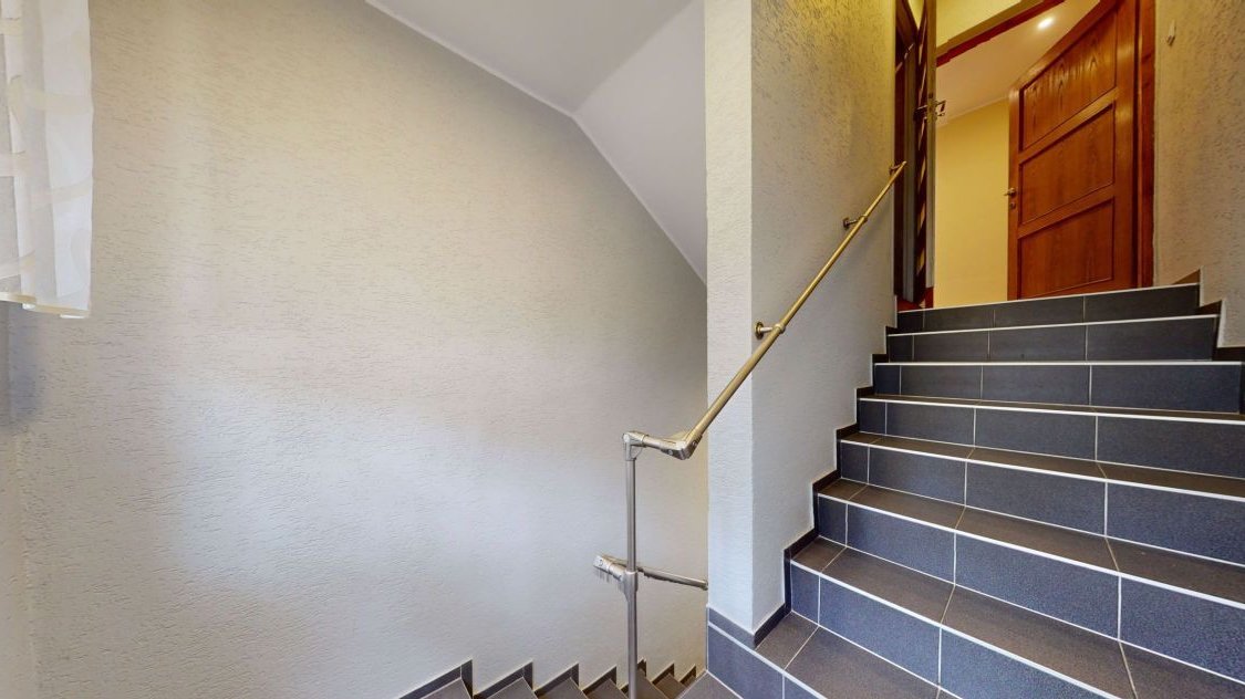 Każde z mieszkań znajduje się na osobnym poziomie , niezależne wejścia ze wspólnej klatki schodowej.
