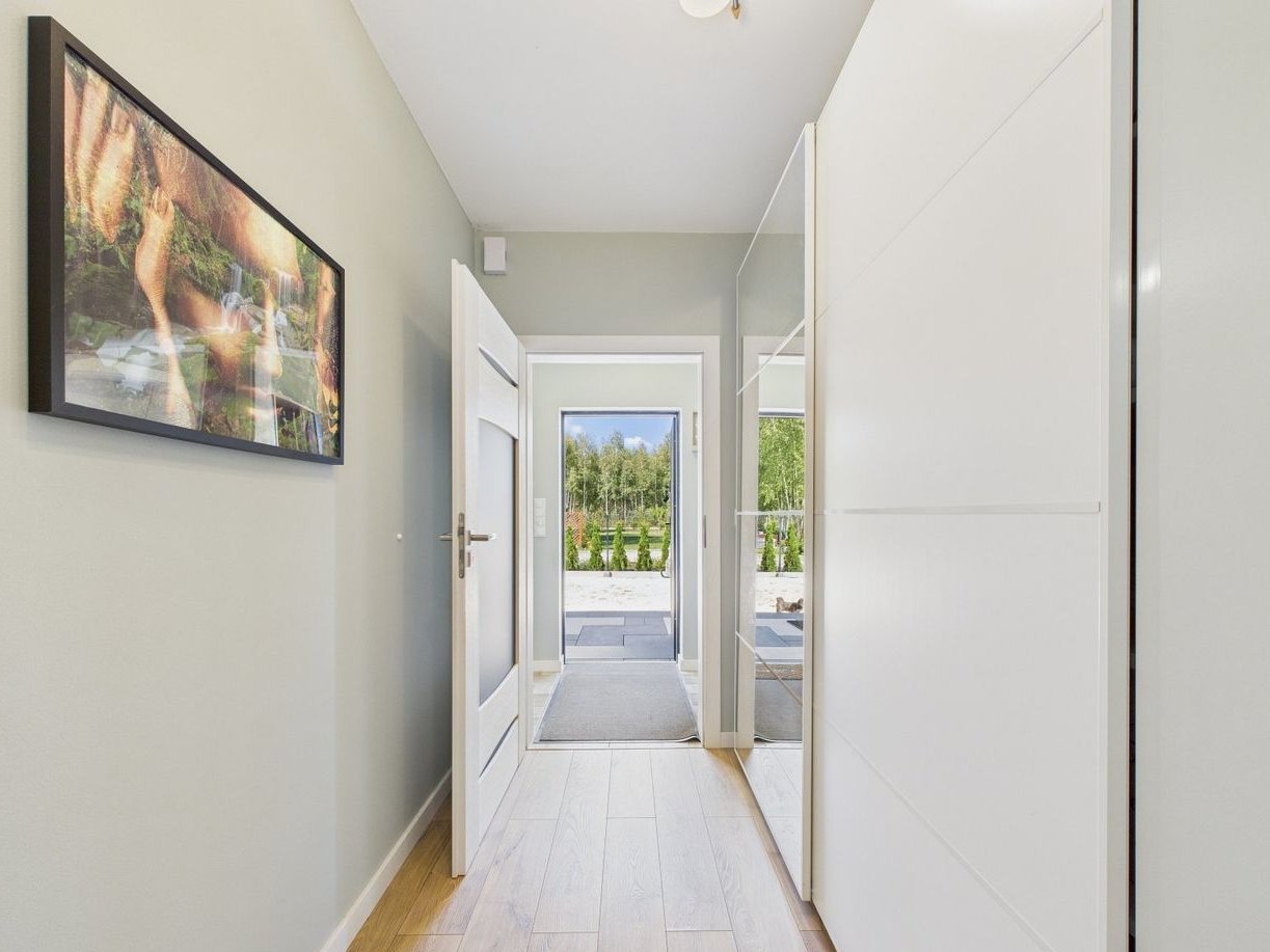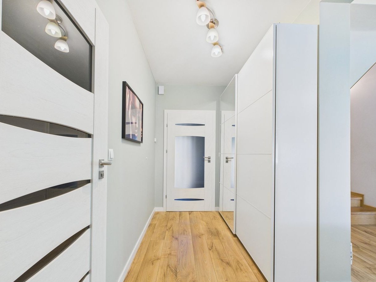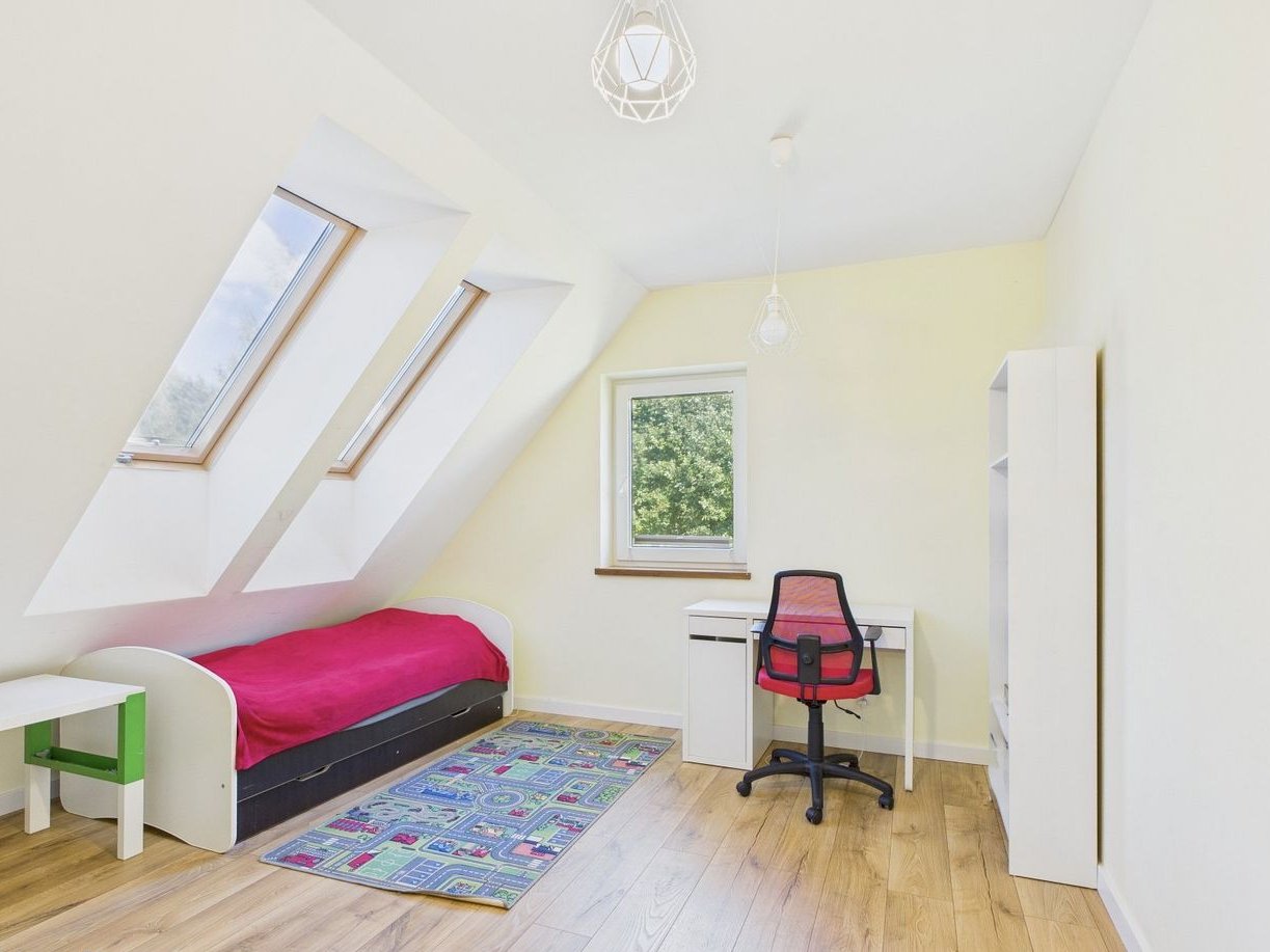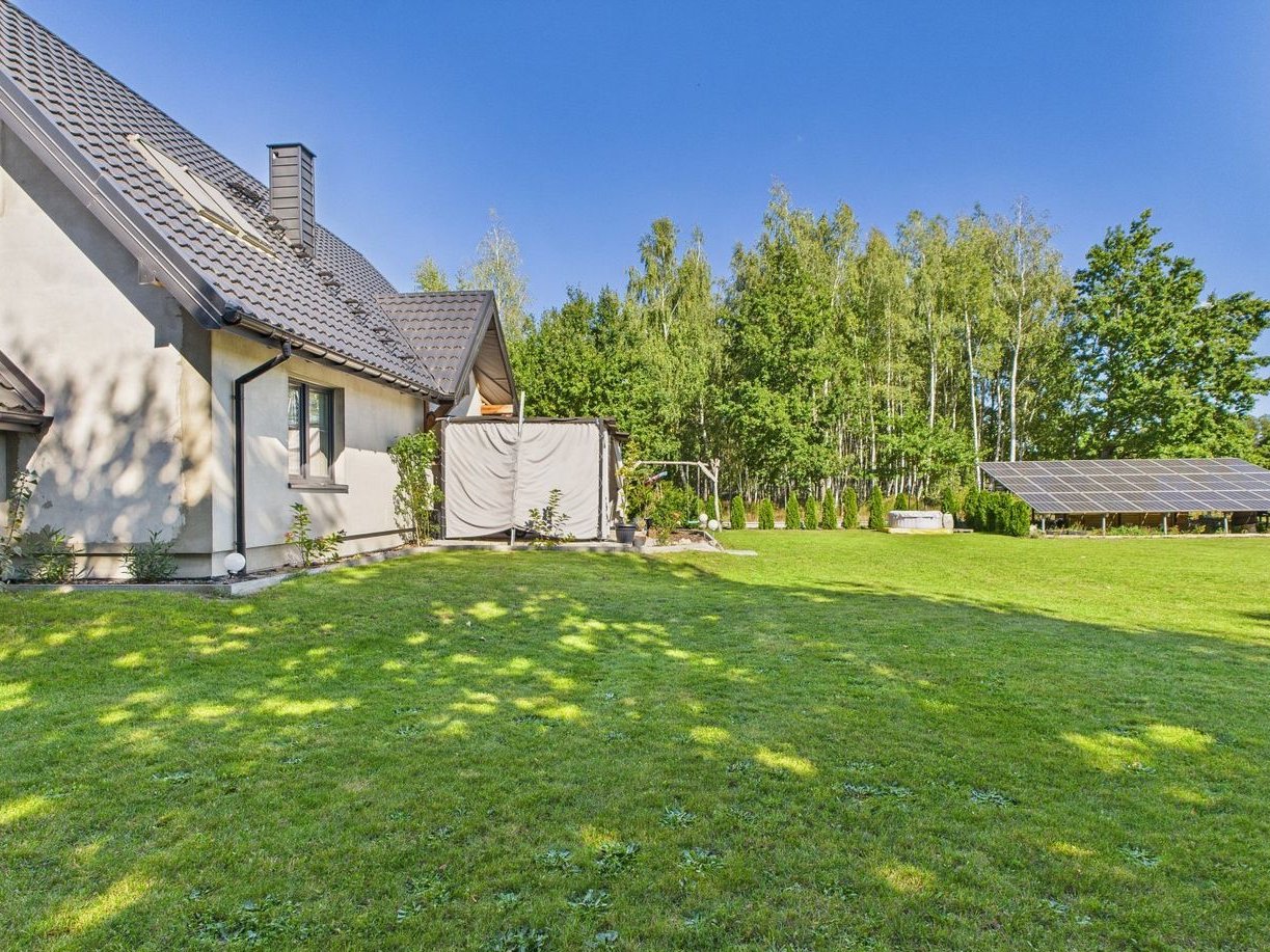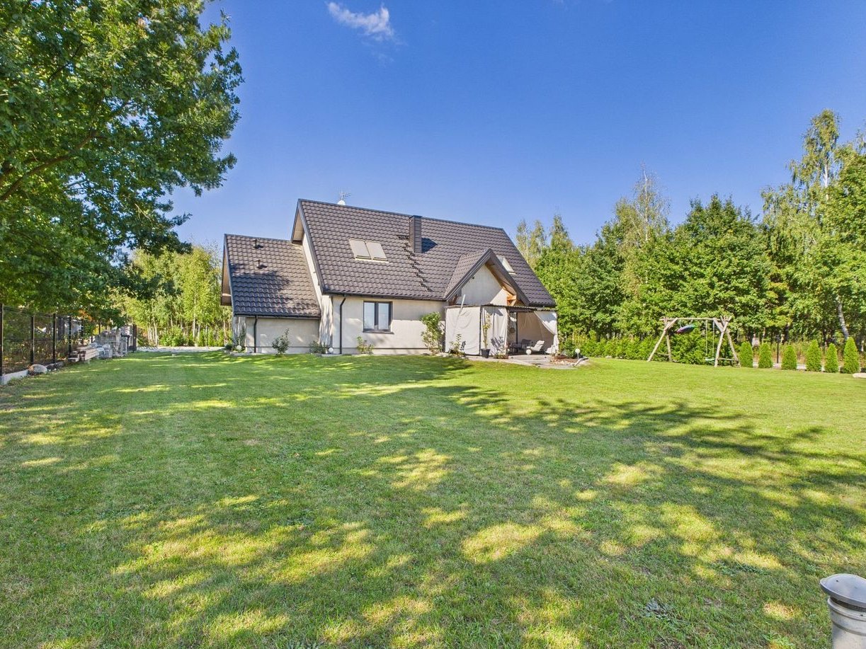 Na sprzedaż wyjątkowa nieruchomość - nowy dom jednorodzinny o powierzchni 150 m2, usytuowany na pięknej, ogrodzonej działce o powierzchni 1500 m2. To propozycja dla osób poszukujących połączenia nowoczesnej architektury, komfortowego układu pomieszczeń i oszczędnych, ekologicznych rozwiązań. Już od wejścia nieruchomość zachwyca eleganckim hallem prowadzącym do części dziennej. Salon o powierzchni ponad 32 m2 z panoramicznymi oknami otwiera się na ogród, zapewniając idealne doświetlenie i naturalne połączenie wnętrza z zieloną przestrzenią na zewnątrz. Salon łączy się z nowoczesną kuchnią oraz praktyczną spiżarnią, tworząc serce domu, w którym koncentruje się życie rodzinne.Na parterze zaplanowano komfortową sypialnię z prywatną łazienką - idealną dla rodziców lub seniorów - dodatkową toaletę, pomieszczenie gospodarcze oraz garaż jednostanowiskowy.Piętro to prywatna strefa domowników: trzy przytulne sypialnie, funkcjonalna łazienka oraz pomieszczenie, które może pełnić rolę pralni lub strychu. Przemyślany układ pozwala na wydzielenie niezależnej klatki schodowej, dzięki czemu piętro można zaaranżować jako osobne mieszkanie.Największym atutem nieruchomości są nowoczesne, proekologiczne technologie. Dom wyposażony jest w ogrzewanie podłogowe zasilane elektrycznie, a na działce zainstalowano rozbudowaną instalację fotowoltaiczną, która zapewnia niezależność energetyczną i minimalizuje koszty utrzymania. Dodatkowo znajduje się tu przydomowa oczyszczalnia ścieków, co czyni dom niezwykle ekonomicznym i przyjaznym środowisku. Otaczająca posesję działka o powierzchni 1500 m2 oferuje szerokie możliwości aranżacyjne - od stworzenia ogrodu z tarasem, przez strefę rekreacyjną z placem zabaw, aż po miejsce relaksu z jacuzzi czy basenem. Całość jest ogrodzona i zapewnia prywatność oraz bezpieczeństwo mieszkańców.To propozycja dla osób, które pragną mieszkać w otoczeniu natury, korzystając jednocześnie z pełnego komfortu nowoczesnych rozwiązań technologicznych, zaledwie 10 km od Sochaczewa.