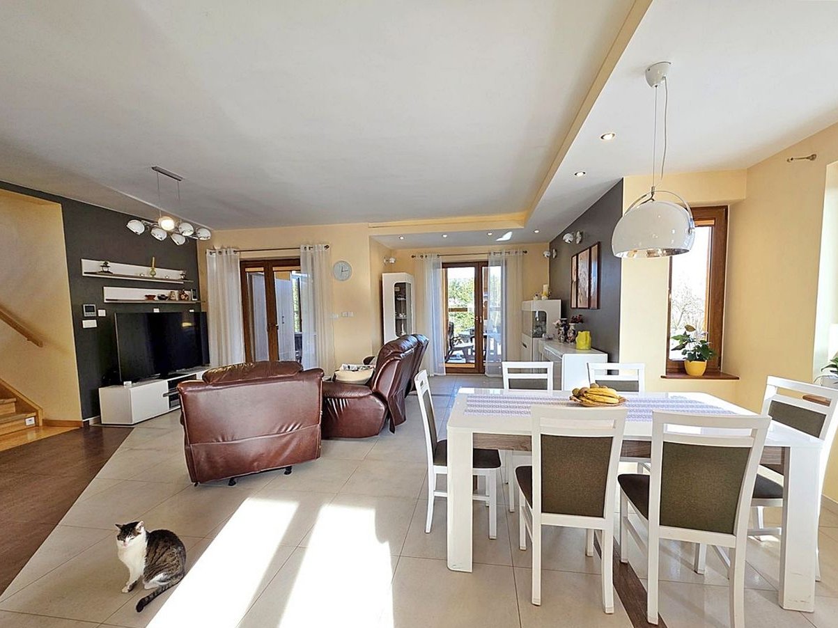 Na sprzedaż wolnostojący dom z 2012 roku - solidnie wybudowany, funkcjonalnie zaprojektowany i osadzony na dużej, ponad 10-arowej narożnej działce. To propozycja dla osób, które cenią dobrą konstrukcję oraz bardzo wygodny układ pomieszczeń.