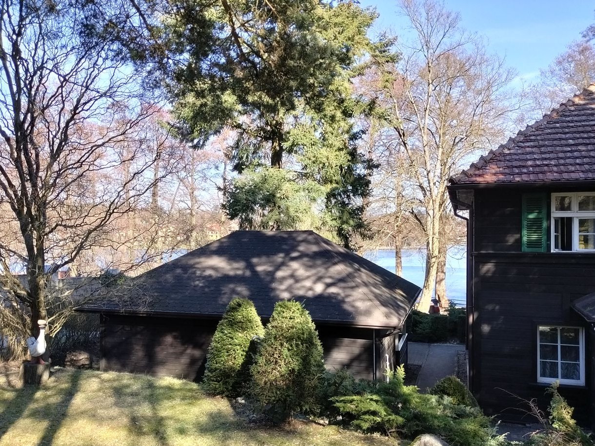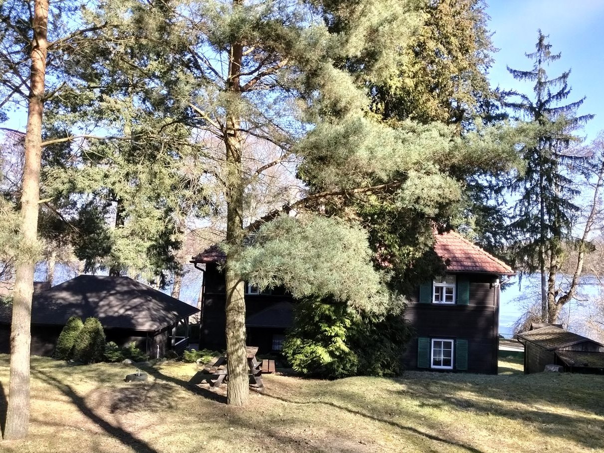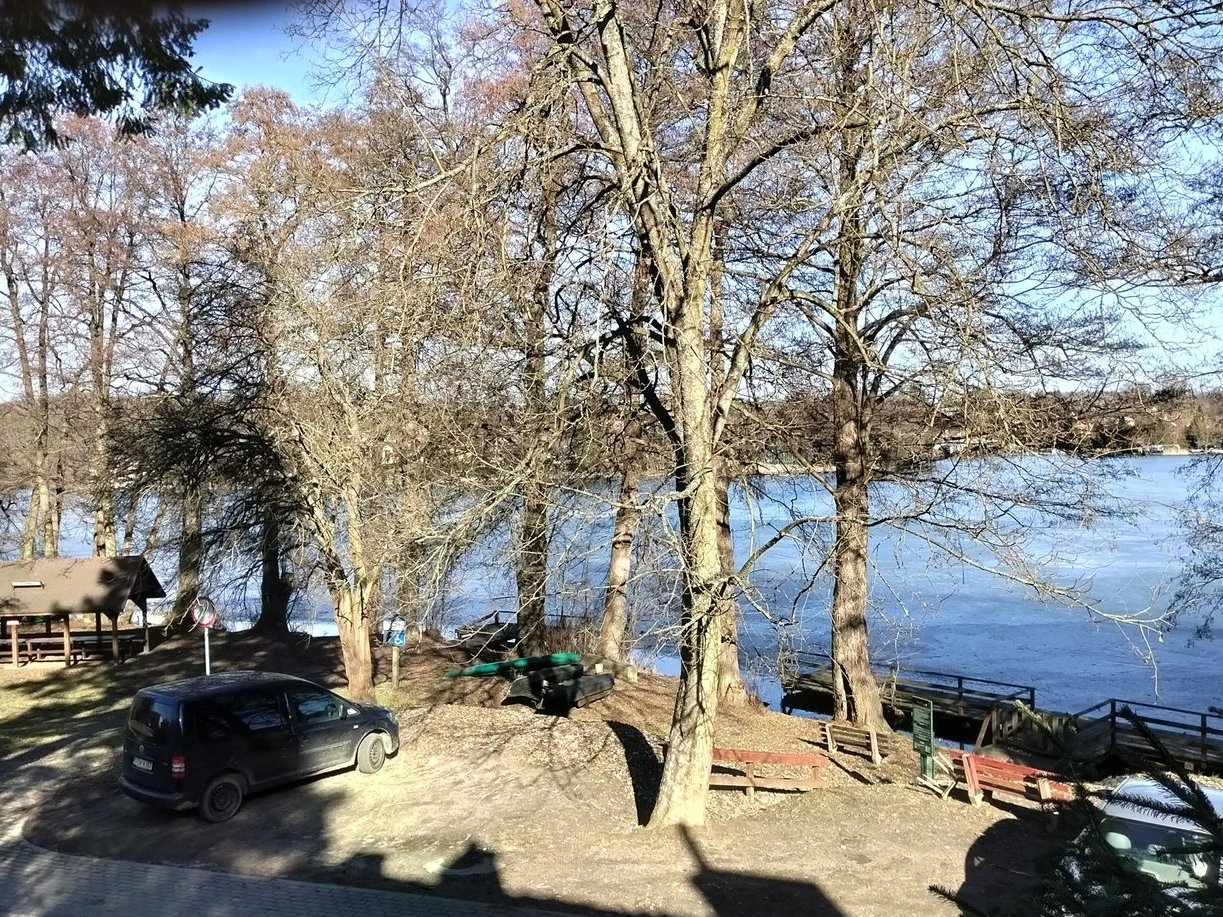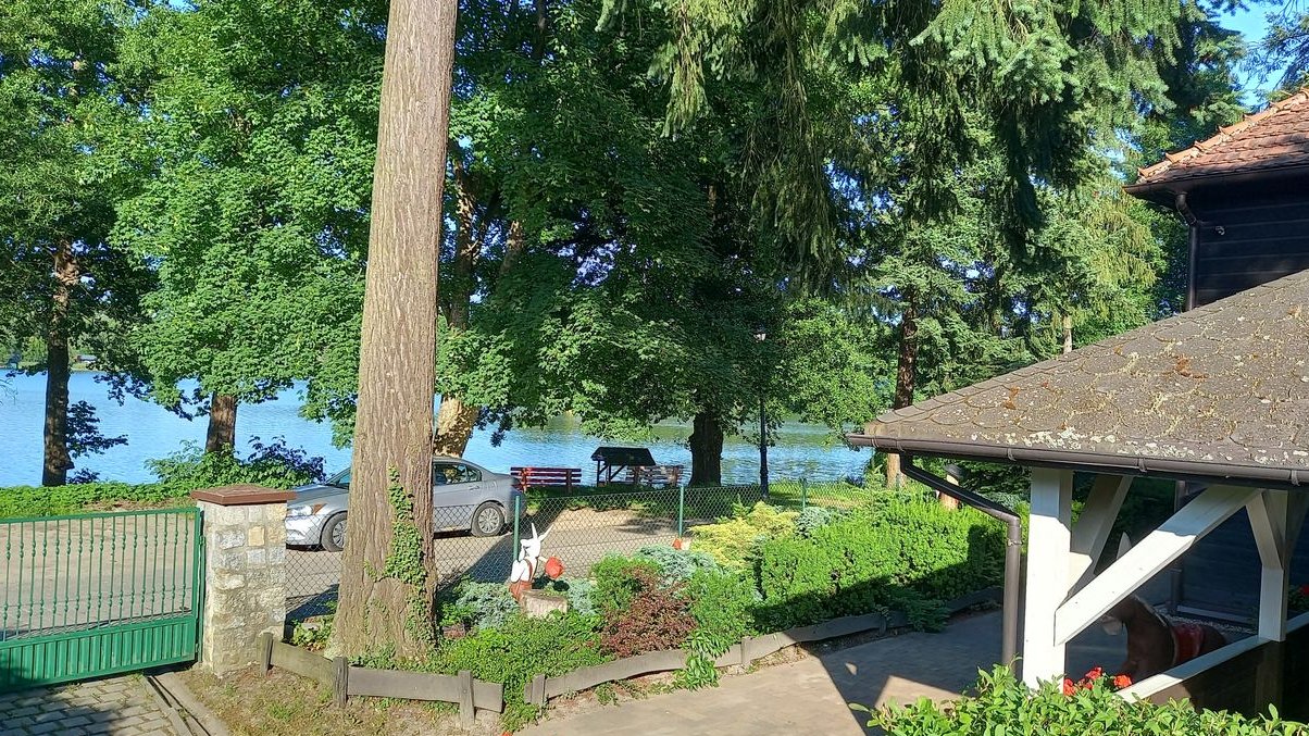 - Drewniana, zadaszona wiata o powierzchni (42 m2) z pięknym widokiem na jezioro.