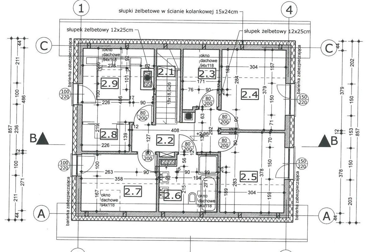 Sufity: na parterze tynk cementowo- wapienny, na poddaszu płyta gipsowo-kartonowa.