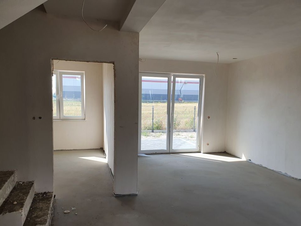 Parter: Przestronna otwarta kuchnia z jadalnią, salon, gabinet, łazienka, kotłownia, garaż.