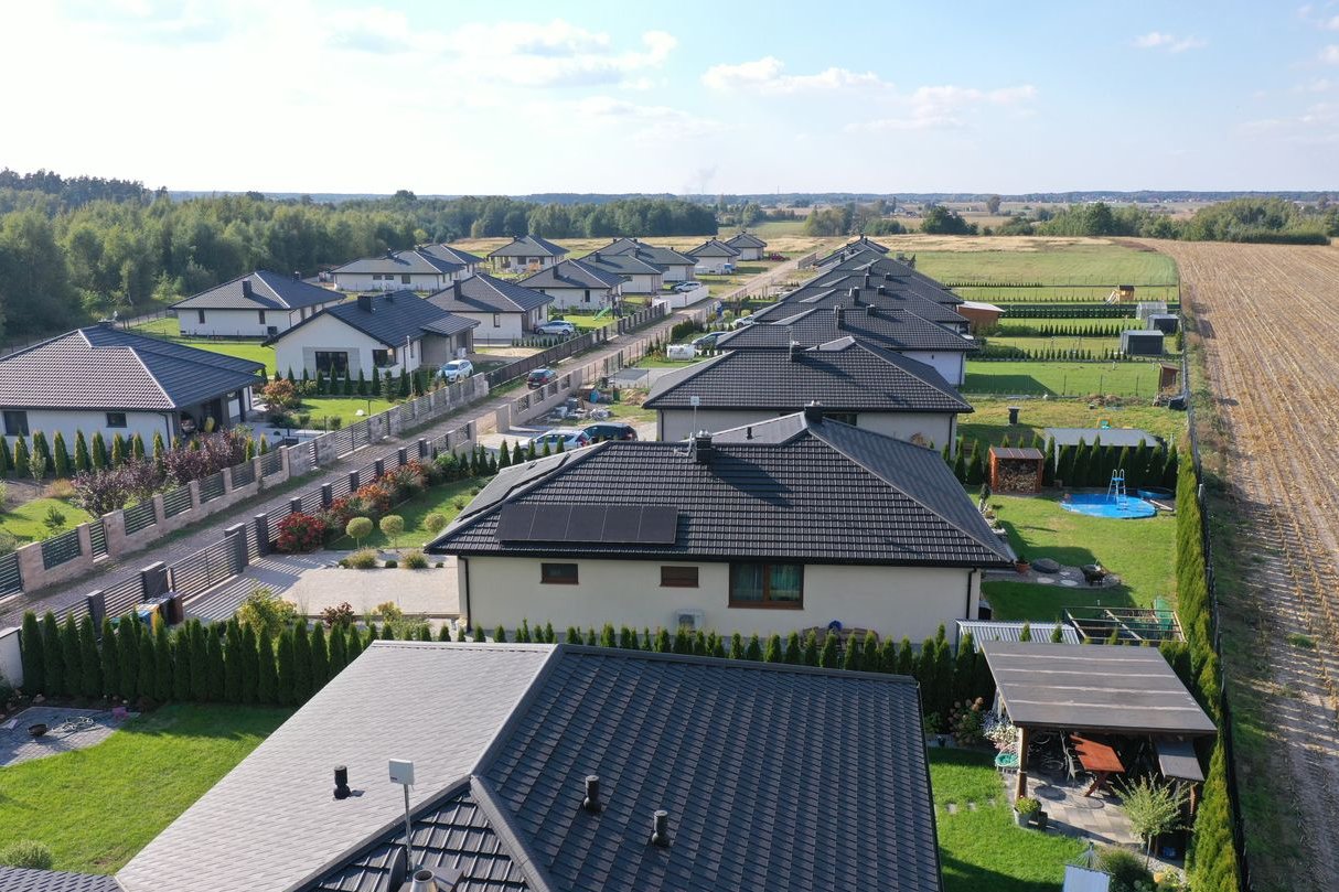 Dom wyposażony w okna trzyszybowe, zapewniające dobrą izolację termiczną i akustyczną.