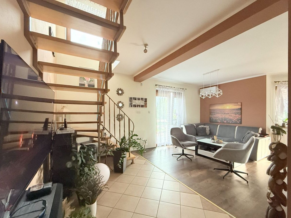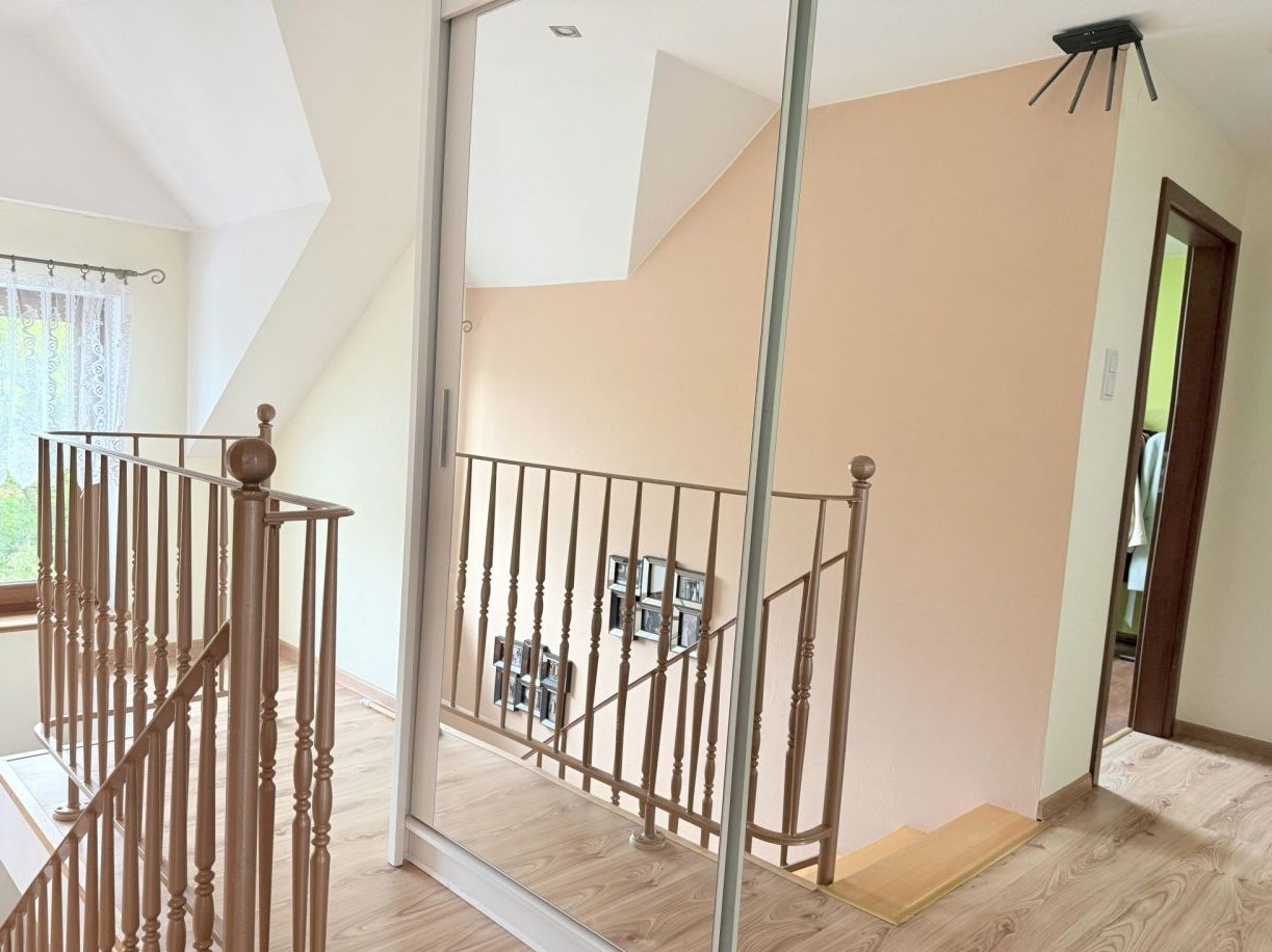 Na sprzedaż komfortowy dom wolnostojący położony w spokojnej, zielonej okolicy, z bezpośrednim widokiem na las i pola. Nieruchomość idealna zarówno dla rodziny szukającej przestrzeni do życia, jak i dla osób prowadzących działalność wymagającą zaplecza warsztatowego lub garażowego.