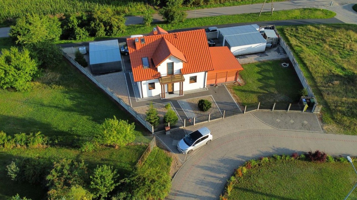 Solidny dom z dużym zapleczem garażowo-warsztatowym w spokojnej okolicy. Idealny dla osób szukających przestrzeni do życia, pracy lub prowadzenia działalności.