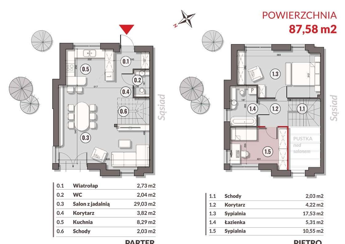 Przy zabudowaniu antresoli niedużym kosztem, możliwe jest zwiększenie powierzchni do 95 m2 z dodatkowym pokojem. Dodatkowo 2 miejsca parkingowe.